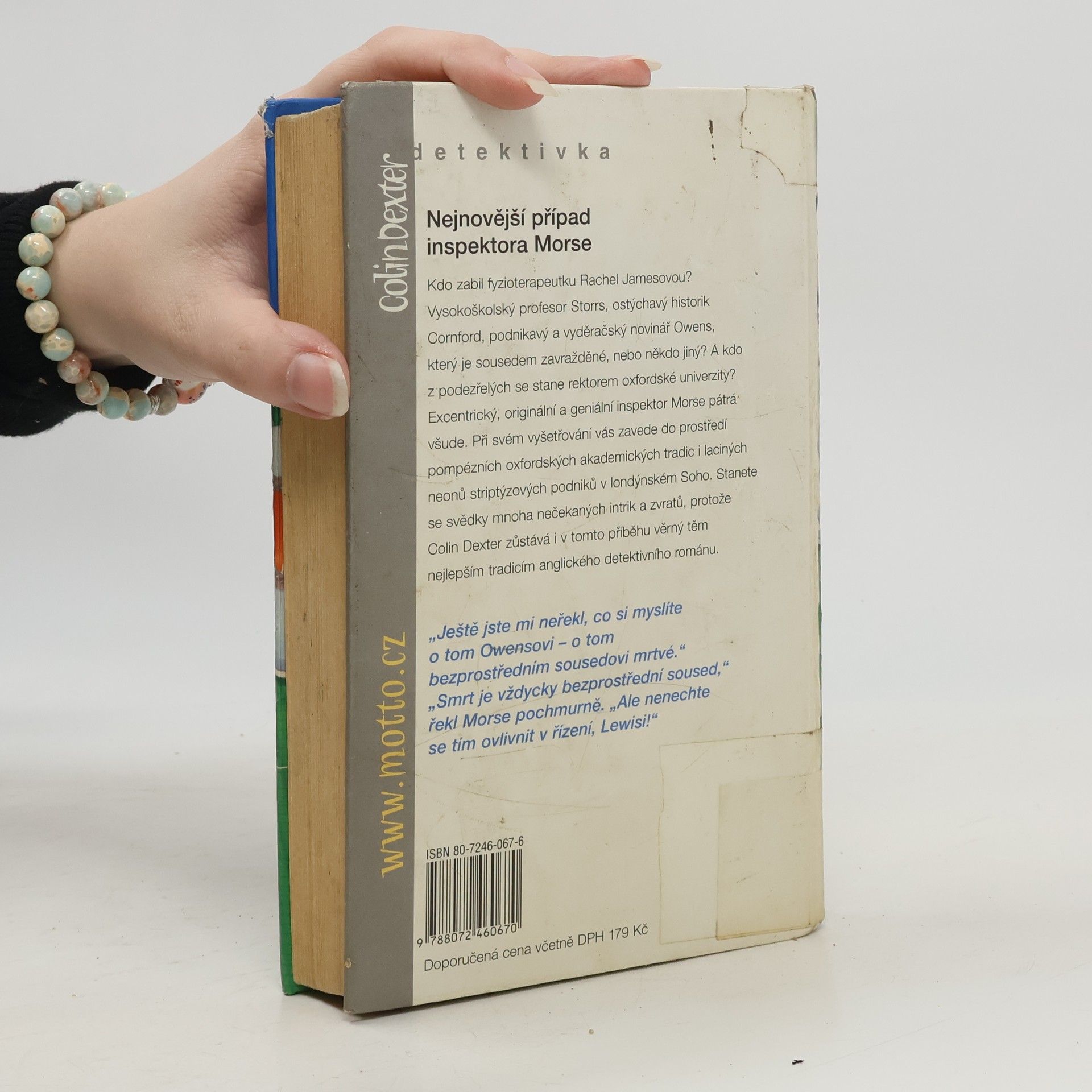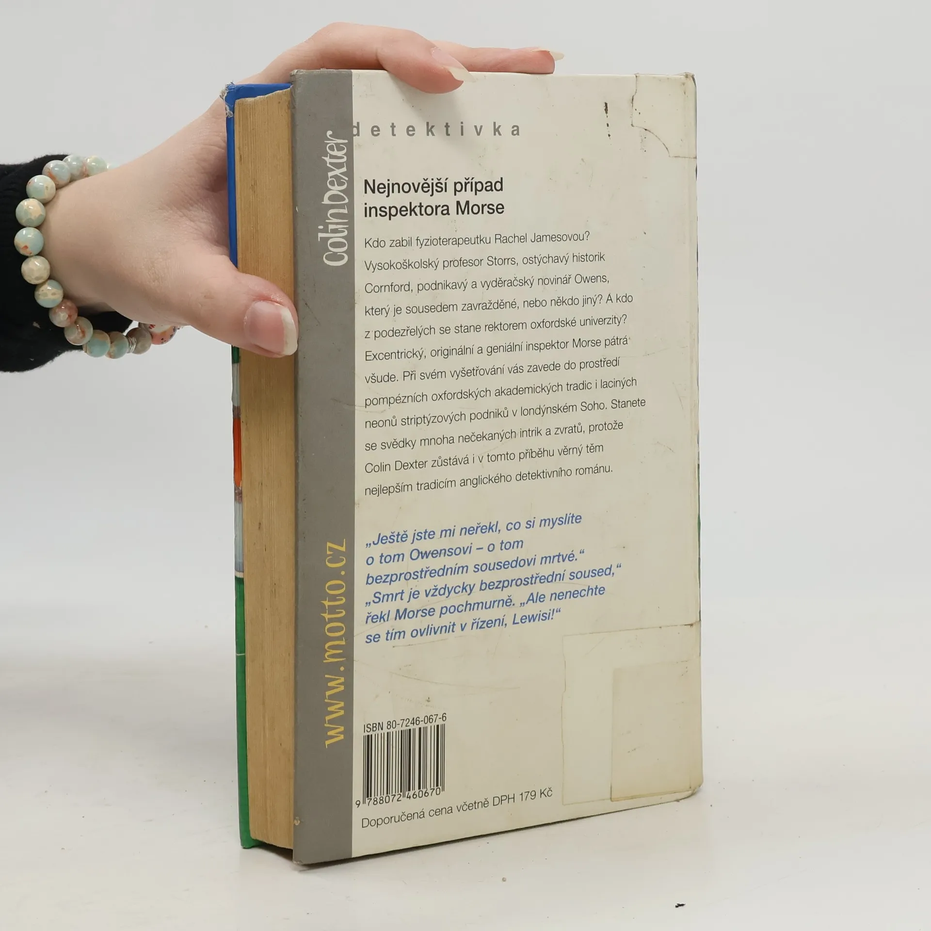 Případ inspektora Morse. Kdo zabil fyzioterapeutku Rachel Jamesovou? A kdo z podezřelých se stane rektorem univerzity? Exentrický, originální a geniální inspektor Morse pátrá, kde se dá. Při svém vyšetřování vás zavede do prostředí pompézních oxfordských akademických tradic i laciných neonů striptýzových podniků v londýnském Soho. Stanete se svědky mnoha nečekaných intrik a zvratů, protože Colin Dexter zůstává i v tomto příběhu věrný těm nejlepším tradicím anglického detektivního románu.... celý text