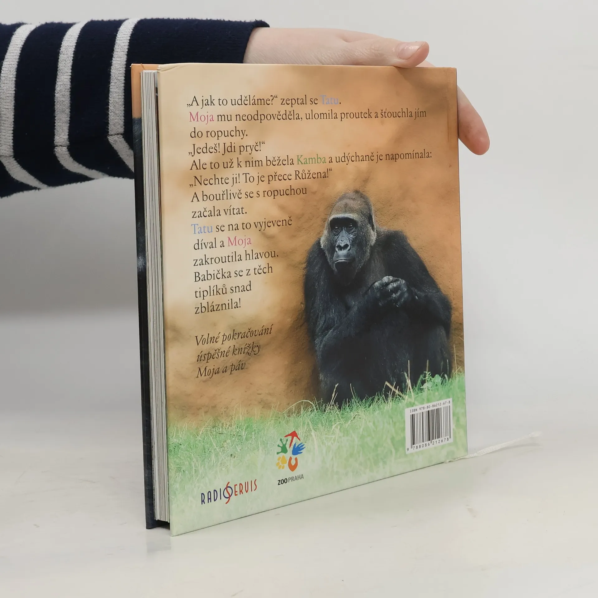Napínavé i humorné příběhy slavné gorilky Moji a jejího mladšího brášky Tatua. Texty autora projektu Odhalení Miroslava Bobka a scénáristky Terezy Šefrnové volně navazují na jejich předchozí úspěšnou knížku Moja a páv. Doplněno mnoha celostránkovými fotografiemi a obsáhlým doslovem pro zvídavé děti i dospělé.