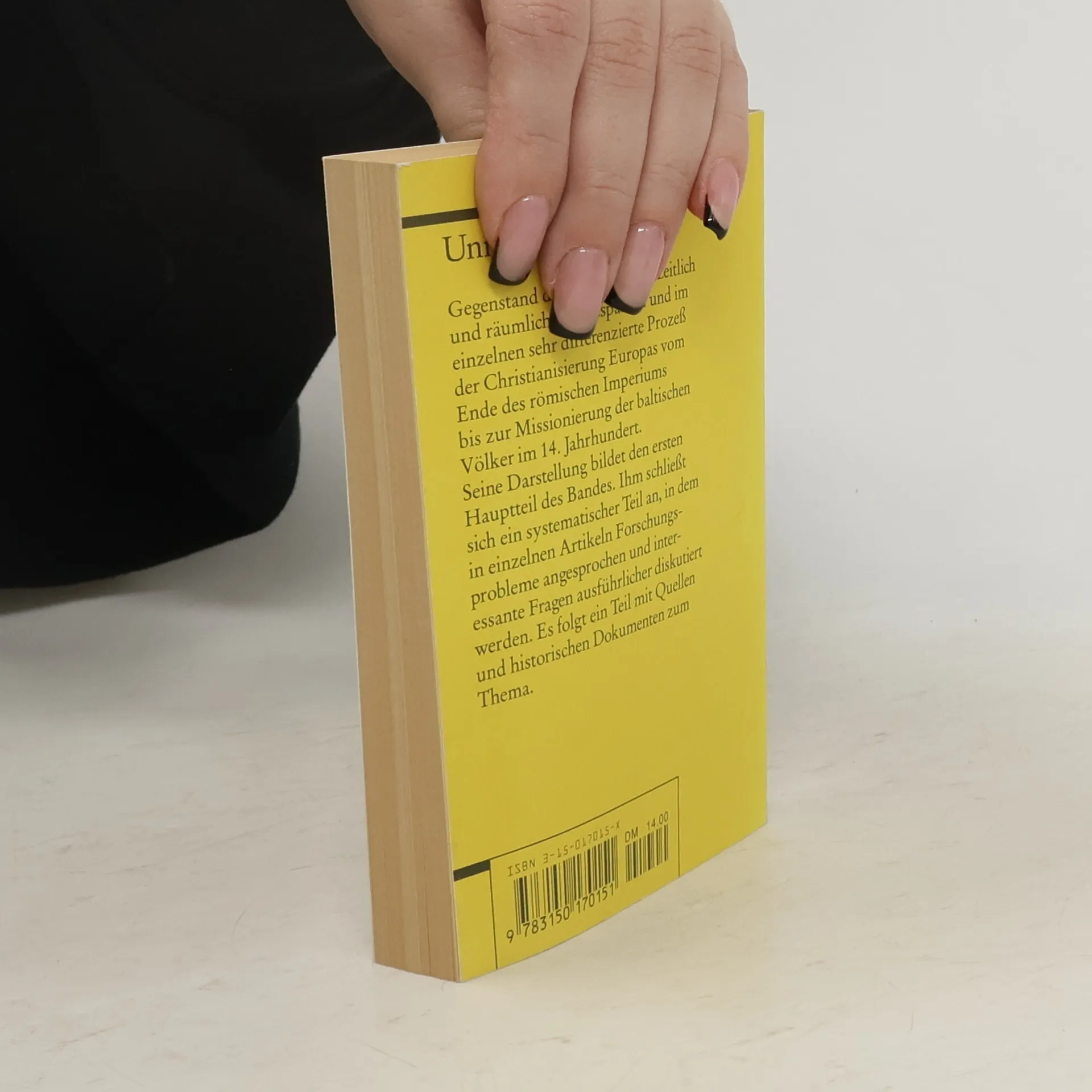 Gegenstand des Bandes ist der chronologisch und geographisch weitgespannte und im einzelnen sehr differenzierte Prozess der Christianisierung Europas vom Ende des römischen Imperiums bis zur Missionierung der baltischen Völker im 14. Jahrhundert. Seine Darstellung bildet den ersten Hauptteil des Bandes. Ihm schließt sich ein systematischer Teil an, in dem in einzelnen Artikeln Forschungsprobleme angesprochen, zentrale Fragen in einen weiteren Zusammenhang gestellt und interessante Details ausführlicher diskutiert werden. Es folgt ein Teil mit Quellen und historischen Dokumenten zum Thema. Der Band ist durchgehend illustriert und mit Karten und chronologischen Tabellen versehen.