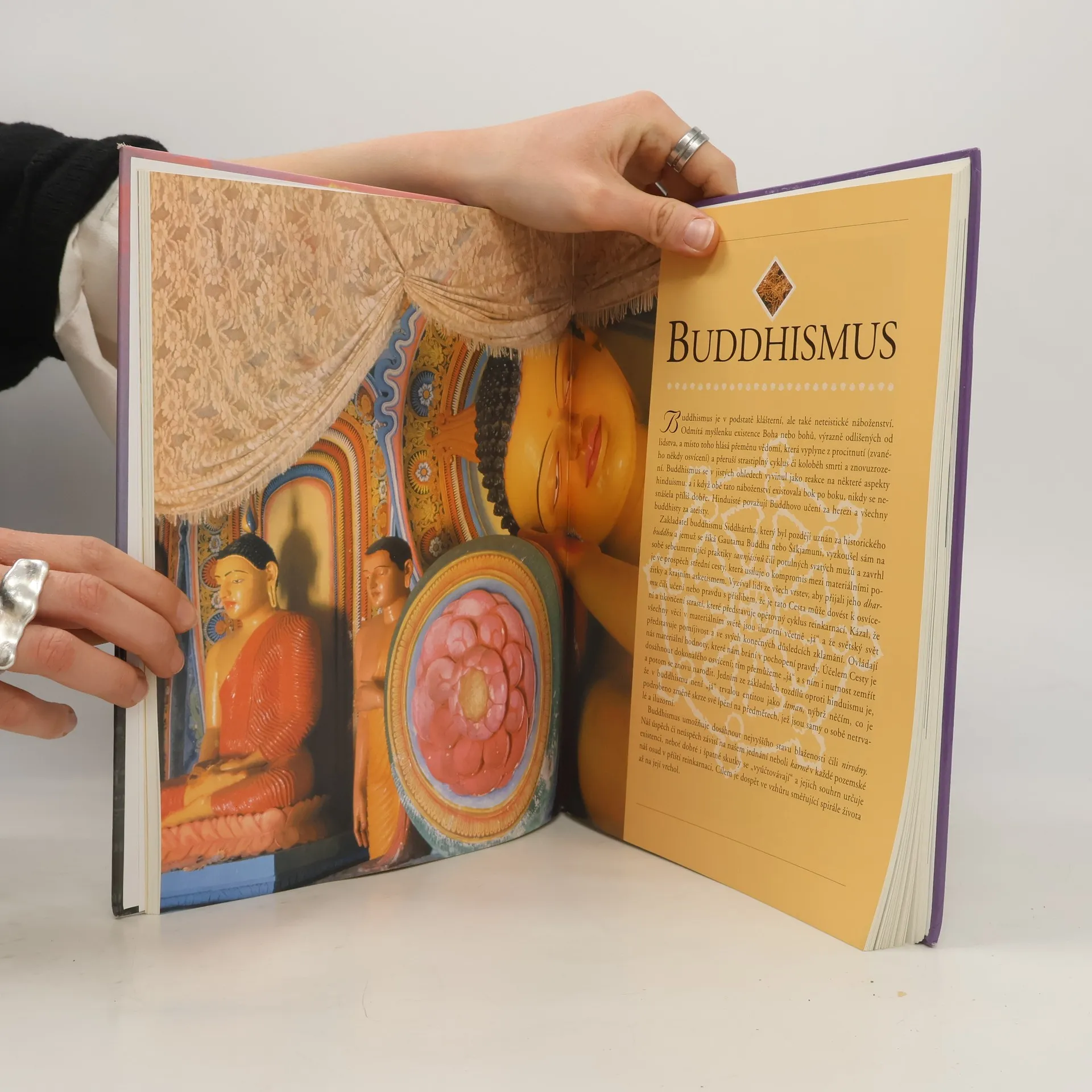 Obsáhlý výklad o náboženstvích a filosofiích Indie (hinduismus, buddhismus, džinismus) a Dálného východu (Čína, Japonsko). Tato publikace porušuje pravidlo, že knihy plné obrázků většinou neoplývají hodnotným textem. Jak je vidět, jde skloubit oboje. Zárukou je i jméno překladatele, jímž je přední znalec východních filosofií Dušan Zbavitel. Asijská náboženství nepřestanou přitahovat duši Evropanovu. Podivný magnetismus nás láká a přitahuje, přestože tušíme, že nikdy neporozumíme duši asijského světa, stejně jako ona té naší. Hinduismus, buddhismus, džinismus, čínská filozofie, japonská náboženství. Každá z kapitol je přehledným (a přesto ne zcela povrchním) úvodem do základů jednoho z náboženských směrů Indie, Číny a Japonska (okrajově jsou zmíněny i některé další asijské země). Kniha popisuje nejen učení a hlavní principy, ale také mýty, rituály, písma, životy učitelů, architekturu, posvátná místa a symboly. Je to zkrátka čtivý a zajímavý text, bohacený množstvím fotografií i rytin, které, pokud mohu odhadnout, jsou ve většině případů publikovány v Čechách poprvé.