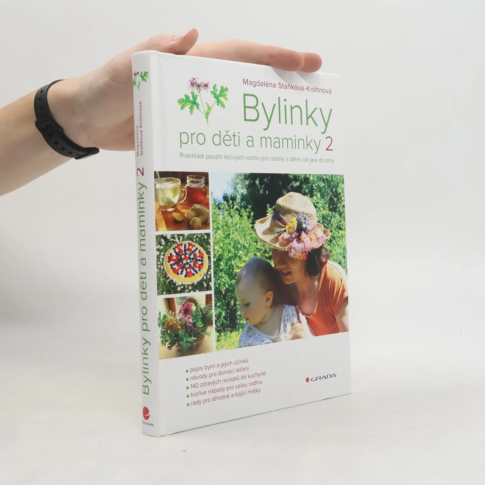 V herbáři druhé knihy úspěšné autorky najdou čtenáři "nejobyčejnější" léčivé plevely, ale i méně známé bylinky, obiloviny, zeleninu a ovoce, které lze u nás sbírat a pěstovat. Publikace se zaměřuje na využití rostlin v domácím jídelníčku a při léčení nemocí v těhotenství, v době kojení a pro děti. Kapitoly o léčení těla i duše pomocí bylin a aromaterapie vyplynuly z osobních autorčiných zkušeností, důležité jsou rovněž i texty o ženských tématech. Na své si přijdou i tátové, kteří nechtějí být odstrčeni, neboť také rádi vaří a plnohodnotně se starají o své děti. Kniha je výjimečná svým čistě autorským zpracováním - autorka všechny rostliny sama pěstuje, sbírá, kreslí, fotografuje a připravuje z nich léčivé přípravky, které zkouší na sobě a svých třech dětech. Inspirací jsou jí lidové tradice - odjakživa znaly babky kořenářky bylinu na každou nemoc, pomáhaly a radily ženám, jak s pomocí bylinek zvládat neduhy své i svých blízkých. Dnešní maminky a tatínkové v knize objeví pozapomenuté, ale po generace předávané moudré rady našich předků, zdravé recepty a nápady na využití rostlin při tvoření s dětmi.