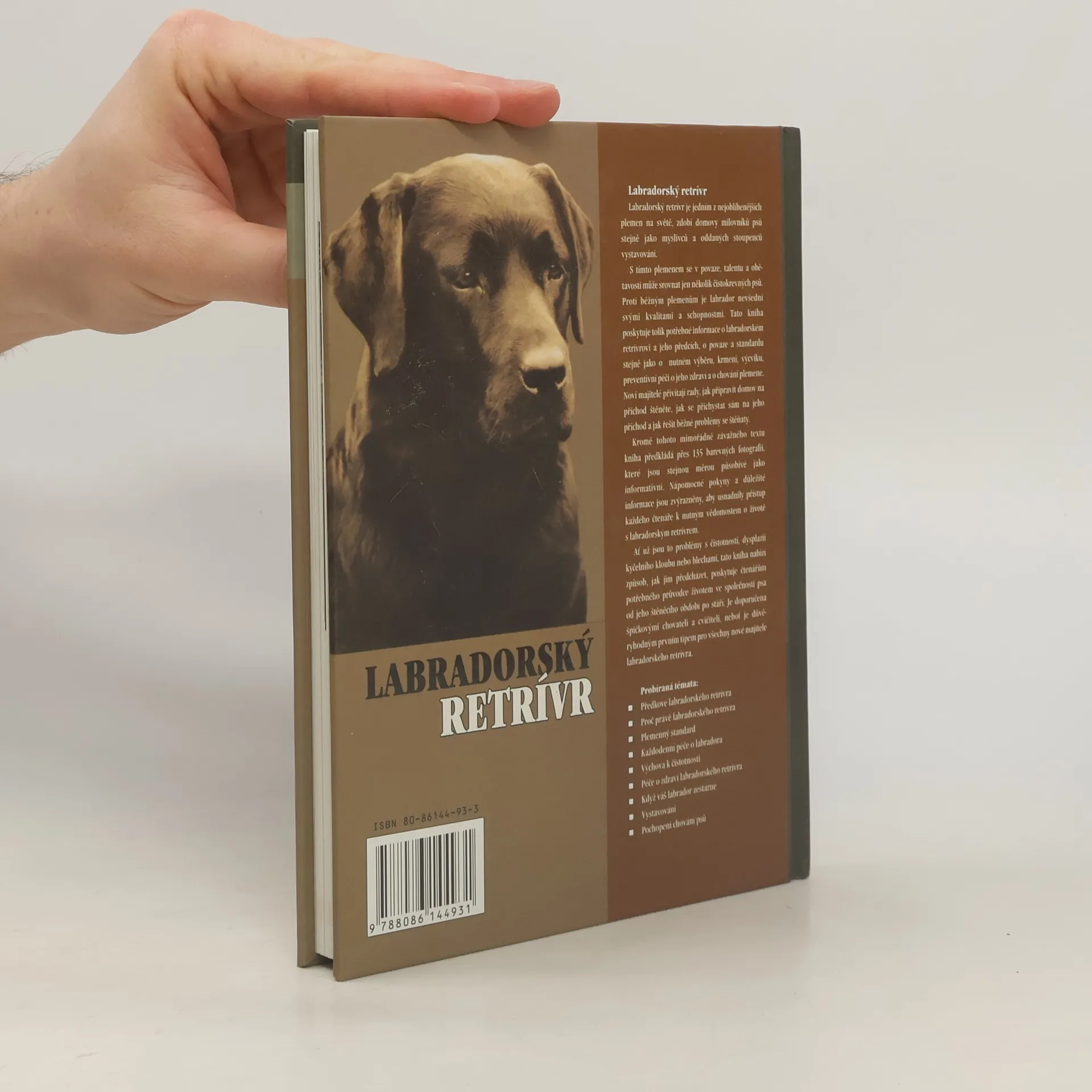 Bohatě ilustrovaná (více než 135 fotografií) publikace z osvědčené série monografií o vyhledávaných psích plemenech je důvěryhodným prvním typem pro všechny nové majitele labradora. Přináší poznatky o původu a historii druhu, jeho zvláštnostech, standardu a plemenitbě, včetně podrobného popisu schváleného plemenného standardu, výčtu a charakteristiky všech typů výstav, polních závodů a pracovních zkoušek. Sleduje psa od štěněcího (výběr vhodného chovatele a zdravého štěněte, výchova k čistotnosti a výcvik), až po seniorský věk (péče o stárnoucího psa). Maximální prostor věnuje každodenní péči o psa (vhodné složení stravy, dostatečný pohyb, péče o srst, oči, uši, drápy...) a zdravotní péči (typické potíže - parazité, kožní nemoci, dysplazie kyčelního kloubu; možnosti prevence, léčba). Kapitoly věnované povaze a typickým vlastnostem plemene vám pomohou "myslet jako pes", pochopit chování vašeho labradora, předejít případným problémům a nedorozuměním. Připojen je slovníček nedůležitějších kynologických a veterinárních pojmů.