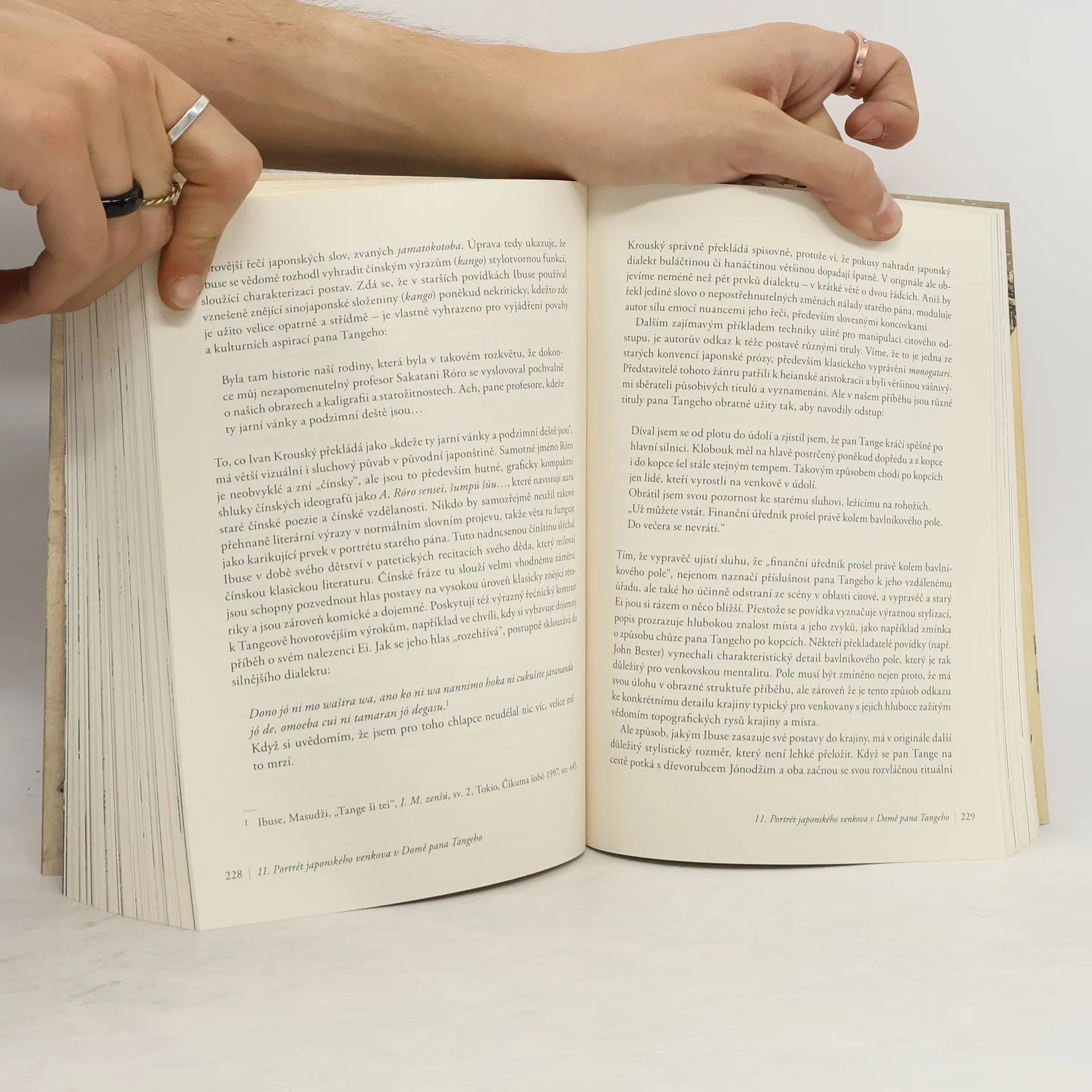 Antonín Líman (1932), znalec japonské kultury a literatury, překladatel a pedagog, jenž třicet let působil na zahraničních univerzitách, v knize předkládá kritický rozbor stěžejních děl čtyř hvězdných spisovatelů Japonska 20. století, Kawabaty Jasunariho, Tanizakiho Džuničiróa, Ibuse Masudžiho a Šigy Naoji, na nichž, jak sám říká, ho nejvíce zaujala jejich schopnost návratu k citovým jistotám „primitivní duše“, nezasažené jedem moderních náboženství a ideologií.