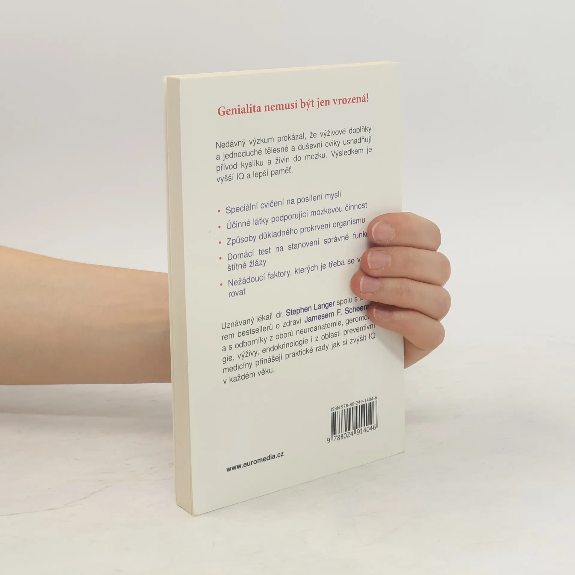 Pro všechny věkové kategorie. Nedávný výzkum prokázal, že výživové doplňky a jednoduché tělesné a duševní cviky usnadňují přívod kyslíku a živin do mozku. Výsledkem je vyšší IQ a lepší paměť. V knize najdete speciální cvičení na posílení mysli, tipy na účinné látky podporující mozkovou činnost, způsoby důkladného prokrvení organismu, domácí testy na stanovení správné funkce štítné žlázy i nežádoucí faktory, kterých je třeba se vyvarovat.