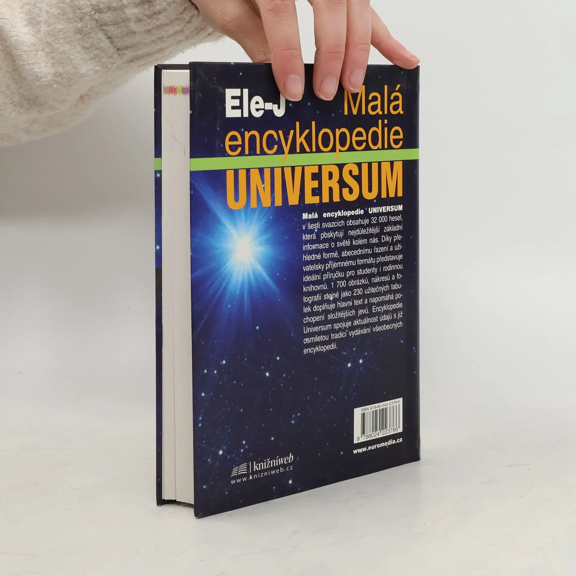 Ele - J Malá encyklopedie Universum v šesti svazcích obsahuje 32 000 hesel, která poskytují nejdůležitější základní informace o světě kolem nás. Díky přehledné formě, abecednímu řazení a uživatelsky příjemnému formátu představuje ideální příručku pro studenty i rodinnou knihovnu. 1 700 obrázků, nákresů a fotografií stejně jako 230 užitečných tabulek doplňuje hlavní text a napomáhá pochopení složitějších jevů. Encyklopedie Universum spojuje aktuálnost údajů s již osmiletou tradicí vydávání všeobecných encyklopedií.
