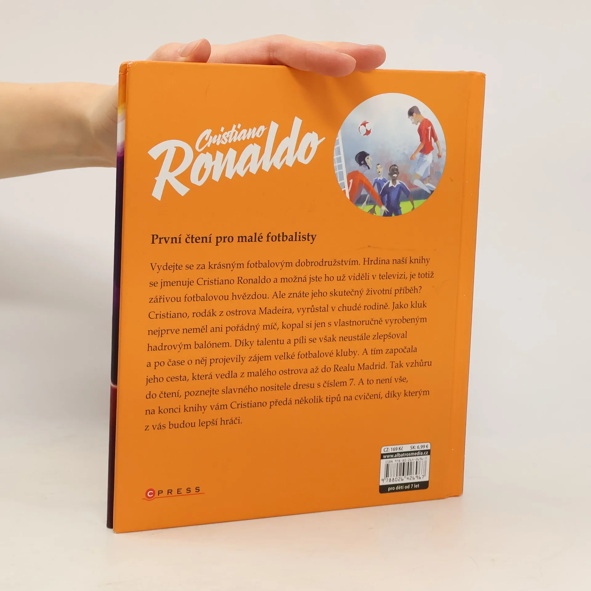 Přečtěte si skutečný příběh slavného Cristiana Ronalda. Vydejte se za krásným fotbalovým dobrodružstvím. Hrdina našeho příběhu se jmenuje Cristiano Ronaldo a možná jste ho už viděli v televizi, je totiž zářivou fotbalovou hvězdou. Ale znáte jeho skutečný životní příběh? Cristiano, rodák z ostrova Madeira, vyrůstal v chudé rodině. Jako dítě neměl ani pořádný míč, kopal si jen s hadrovým balónem. Díky talentu a píli se však neustále zlepšoval a po čase o něj projevily zájem velké kluby. A tím započala jeho cesta, která vedla z malého ostrova až do Realu Madrid.