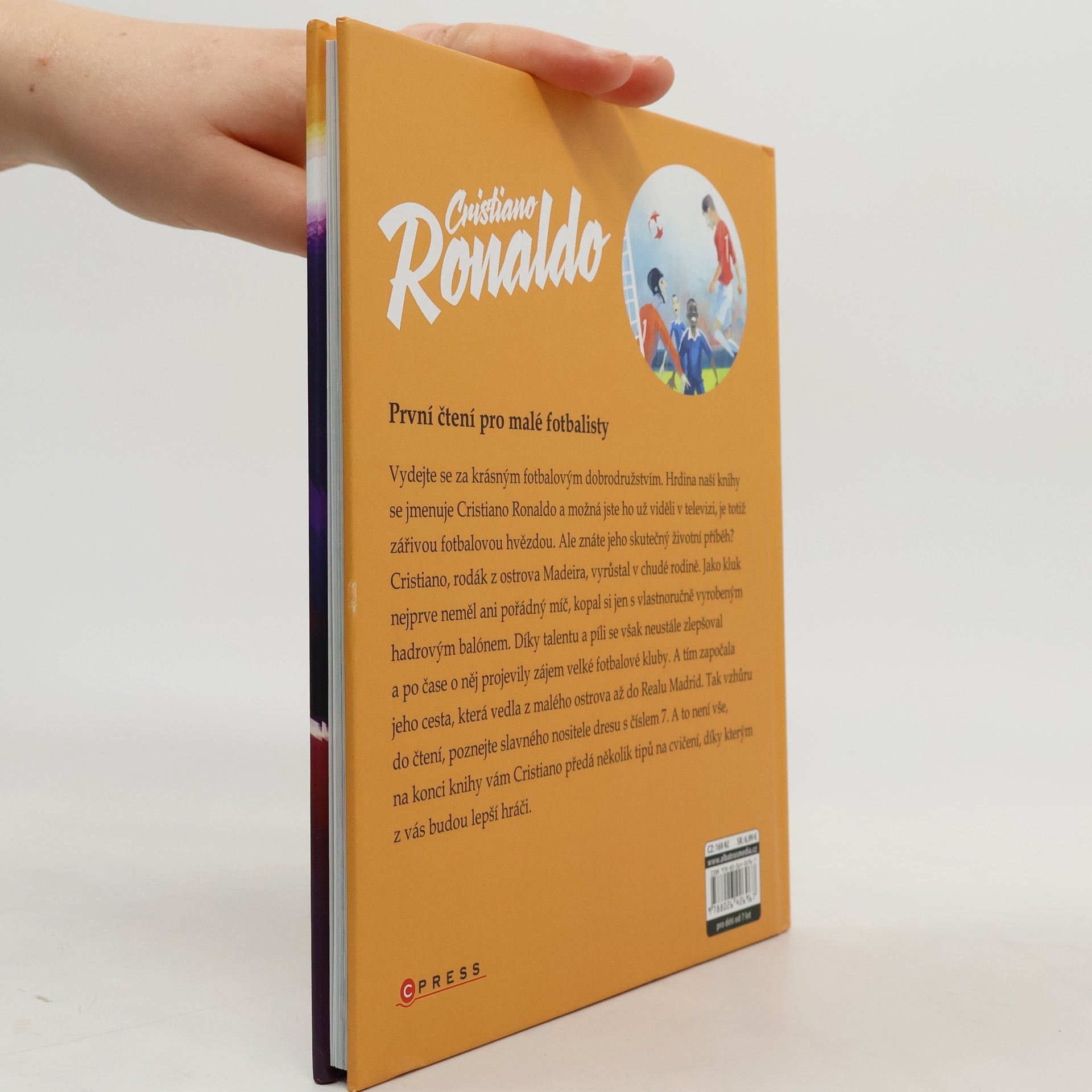 Přečtěte si skutečný příběh slavného Cristiana Ronalda. Vydejte se za krásným fotbalovým dobrodružstvím. Hrdina našeho příběhu se jmenuje Cristiano Ronaldo a možná jste ho už viděli v televizi, je totiž zářivou fotbalovou hvězdou. Ale znáte jeho skutečný životní příběh? Cristiano, rodák z ostrova Madeira, vyrůstal v chudé rodině. Jako dítě neměl ani pořádný míč, kopal si jen s hadrovým balónem. Díky talentu a píli se však neustále zlepšoval a po čase o něj projevily zájem velké kluby. A tím započala jeho cesta, která vedla z malého ostrova až do Realu Madrid.