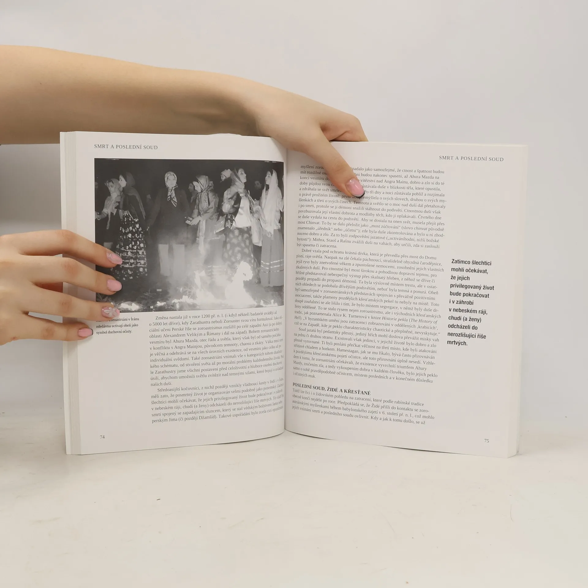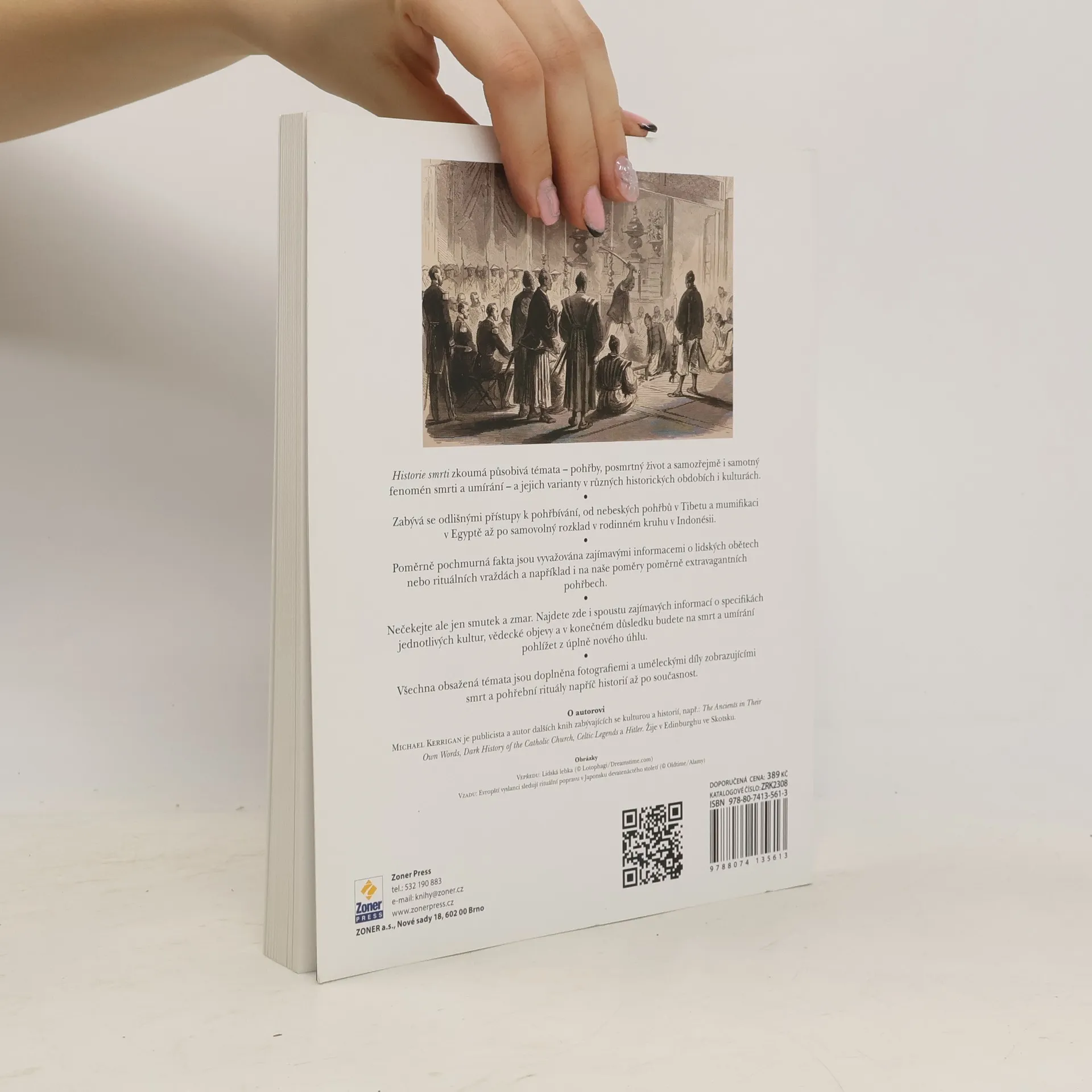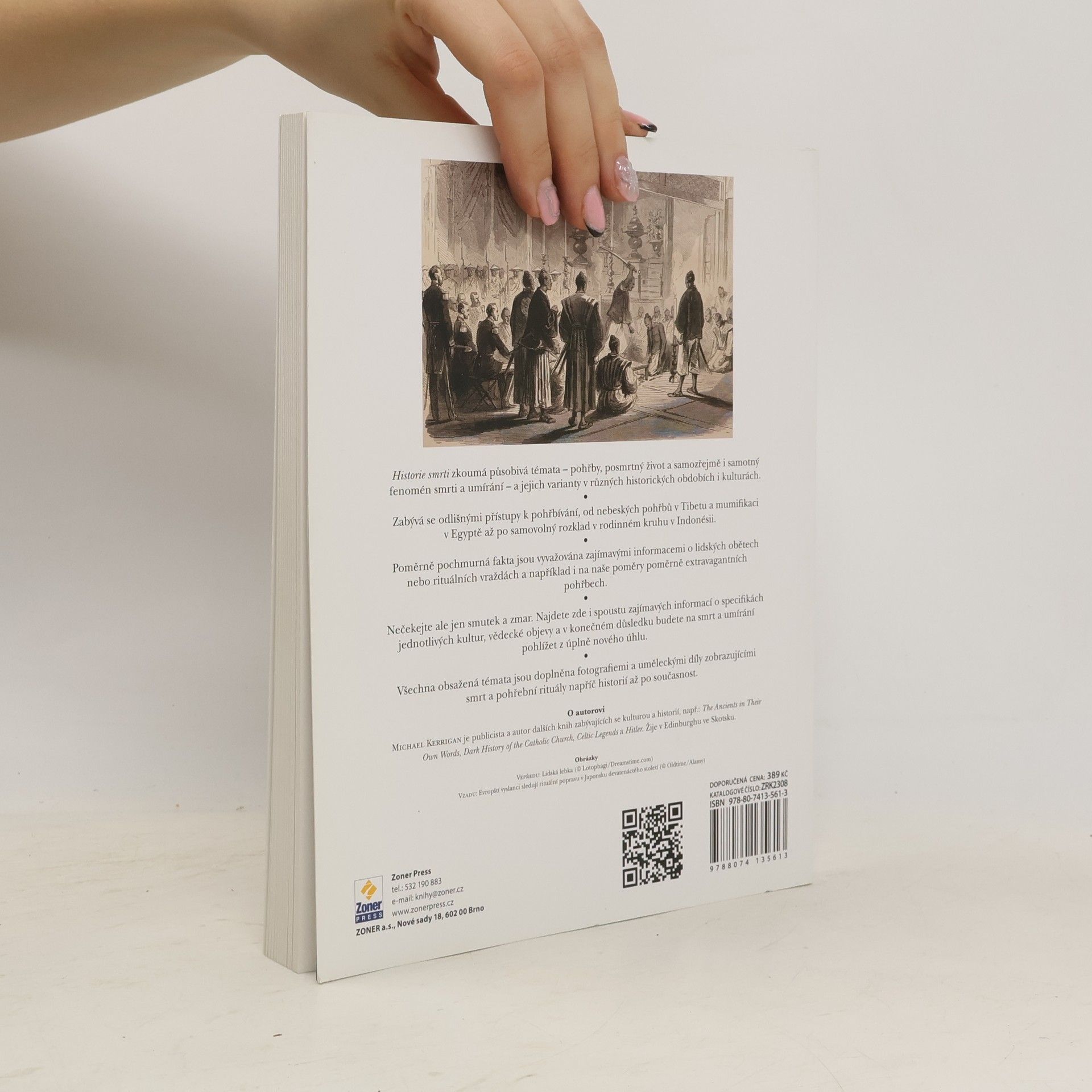 Smrt je univerzální a každá kultura se s ní vyrovnává jinak. V knize Michaela Kerrigana můžete podrobně zkoumat fascinující téma umírání, představy o posmrtném životě a pohřební obřady v různých společnostech – od středověkých francouzských královských pohřbů po pohřbívání zaživa v Súdánu. Od egyptských pyramid po čínskou terakotovou armádu a viktoriánská mauzolea, kniha pokrývá široké spektrum historických a kulturních přístupů k smrti. Pohřby a rituály spojené se smrtí mohou mít různé podoby – od slavnostních po oslavné, opilecké či dokonce lascivní. Zjistíte, jaké to je mít zemřelého předka doma nebo si s jeho mumií vyrazit na piknik. Téma smrti je zahaleno tajemstvím, neboť pro mnohé je tabu. Proč se však stalo námětem tolika uměleckých děl? Co nás vede k touze toto téma "detabuizovat"? Odpovědi na tyto otázky jsou podány sugestivně, takže knihu jen tak nepustíte z ruky. Ačkoliv se můžete obávat, že vás čtení postraší, kniha je zpracována citlivě a obsahuje více než 100 pozoruhodných fotografií a uměleckých děl. Chmurná fakta vyvažují zajímavé detaily z mnoha kultur a epoch, odhalující, jak svým odchodem utváříme vlastní životy.