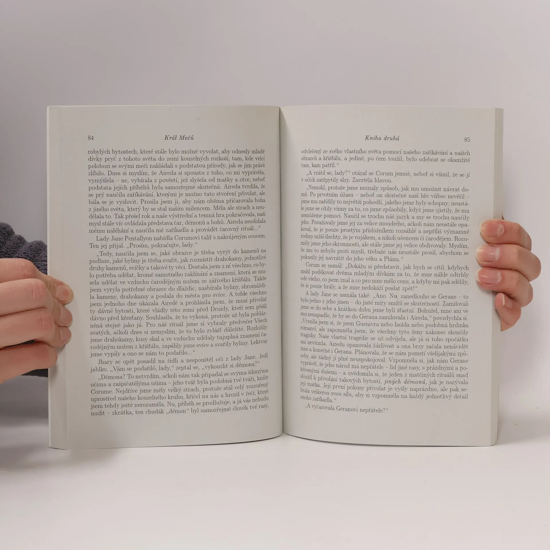 Třetí a závěrečné pokračování dobrodružství knížete Coruma. Byly to časy oceánů světla a časy divokých bestií z bronzu, létajících prostorem měst, která se vznášela přímo pod klenbou nebe. Stáda divokého dobytka, mohutnějšího než hrady, plnila bučením rozlehlé pastviny; mladá a halasivá stvoření navštěvovala ponuře se valící vody řek. Byl to doba bohů, jejichž neustálou přítomnost bylo možno vysledovat ve všem, co ve všehomíru existovalo; doba obrů procházejících vodou, doba nerozumných trpaslíku a stvoření zbavených tvarů, které bylo možno přivolat neopatrnou nebo horečnatou myšlenkou a jež neodešla, aniž by způsobila utrpení nebo pokud jim nebyla složena krutá oběť. Byla to doba magie, zjevení a nestálé přírody, doba událostí zdánlivě nemožných paradoxů, které mohly přivést k šílenství; přání, jež se poslušně vyplňovala a přání, jež se stávala opakem; doba nočních můr, které se náhle stávaly skutečností. Byla to doba zajímavá a temná. Doba vlády Mečů. Byly to časy, kdy Vadhaghové a Nhadraghové, věční nepřátelé, vymírali. Čas, kdy se na světě objevil Člověk, otrok strachu. Nebyl si vědom toho, že většina utrpení a bolestí, které jej obklopovaly, nebyla výsledkem ničeho jiného než toho, že sám započal svou existenci. Byla to jedna z mnoha ironií osudu s člověkem svázaných s tím, kdo sám svou rasu nazýval „Mabdeni“.... celý text