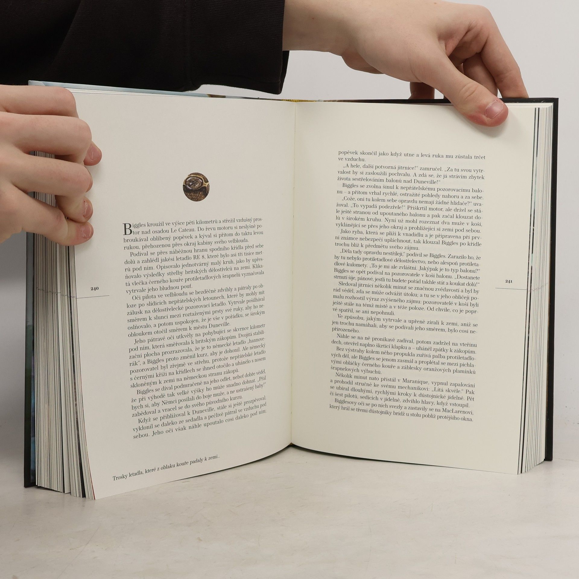 Biggles, který je i přes mladý věk zkušeným pilotem, bojuje za první světové války se svým letadlem na frontě ve Francii. Autor mistrně popisuje nejen dramatické vzdušné souboje, ale i náročné operace, do nichž se zapojují celé letky. Titul patří do legendární série téměř stovky knih mapujících dobrodružství britského letce Jamese Biggleswortha za první a druhé světové války. Obsahuje povídky ze dvou autorových knih. Vychází v kompletně revidovaném překladu, poprvé s desítkami unikátních barevných ilustrací. Nakladatelská anotace. Kráceno.