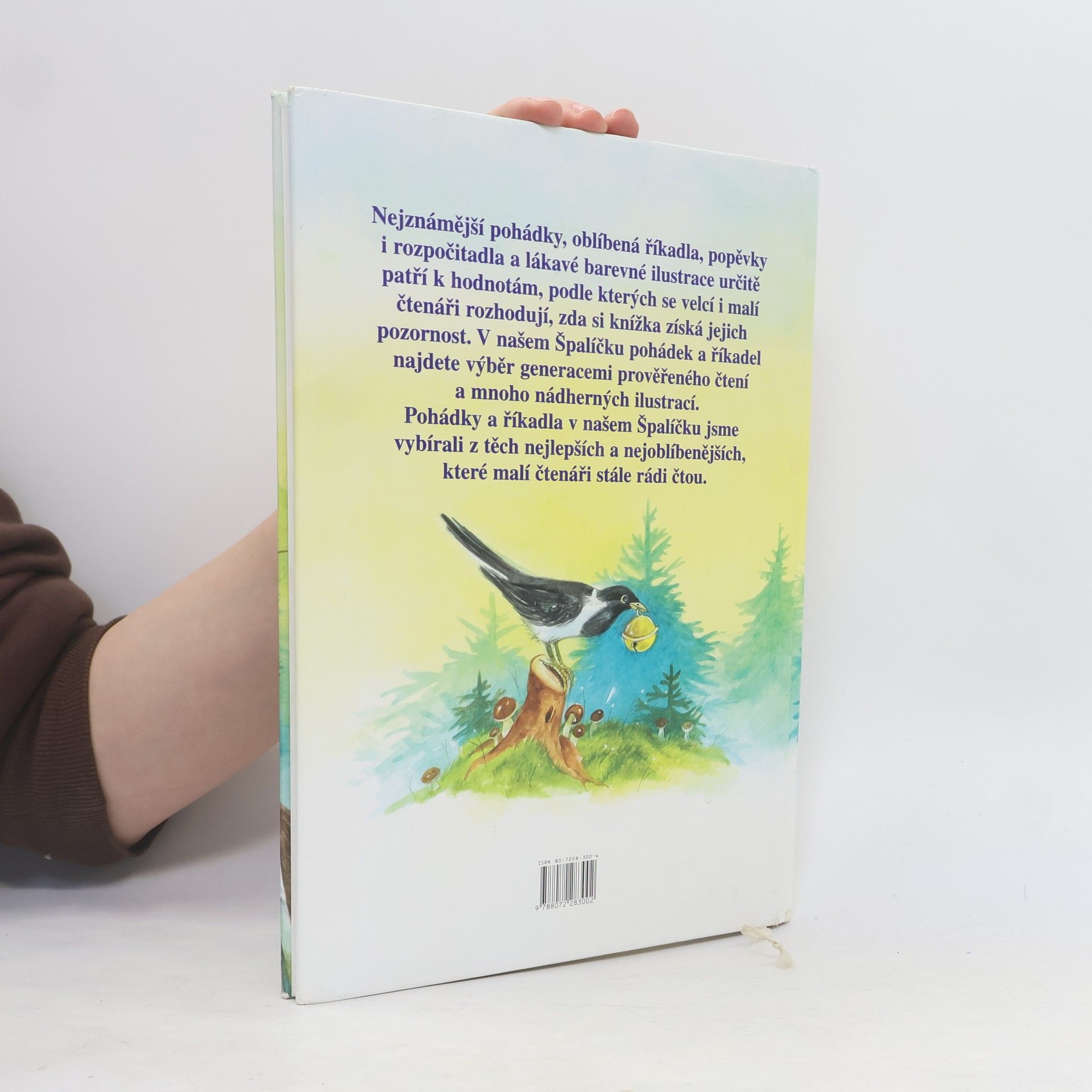 Nejznámější pohádky, oblíbená říkadla, popěvky i rozpočitadla a lákavé barevné ilustrace určitě patří k hodnotám, podle kterých se velcí i malí čtenáři rozhodují, zda si knížka získá jejich pozornost. V našem Špalíčku pohádek a říkadel najdete výběr generacemi prověřeného čtení a mnoho nádherných ilustrací. Pohádky a říkadla v našem Špalíčku jsme vybírali z těch nejlepších a nejoblíbenějších, které malí čtenáři stále rádi čtou. Dotisk v r. 2005