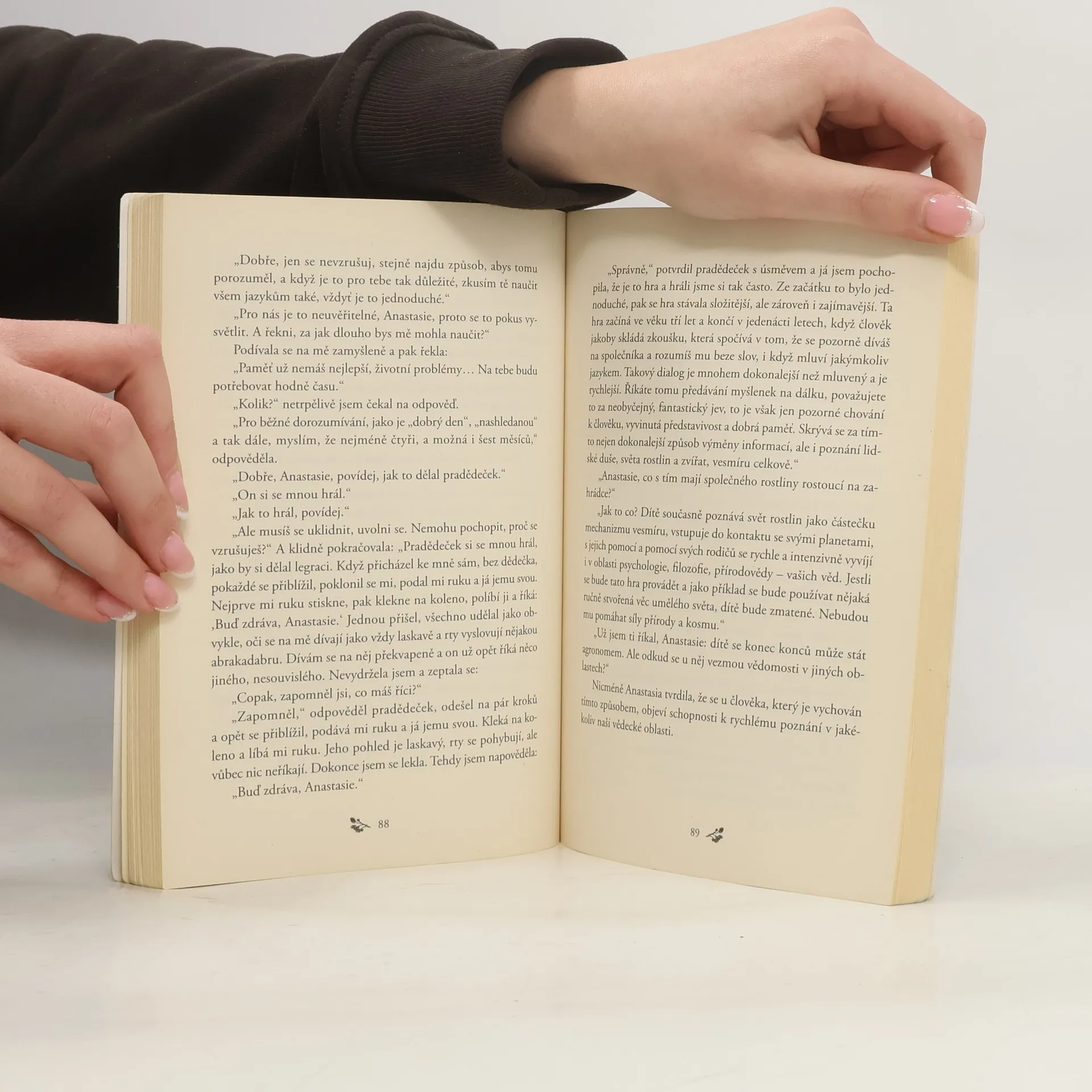 V první knize mladá poustevnice Anastasia odpovídá na řadu otázek týkajících se zdravého způsobu života, šťastného vztahu mezi mužem a ženou, početí a výchovy dětí. Zároveň poskytuje užitečné rady v oblasti zahrádkaření a ekologie, které jsou geniální svou jednoduchostí.