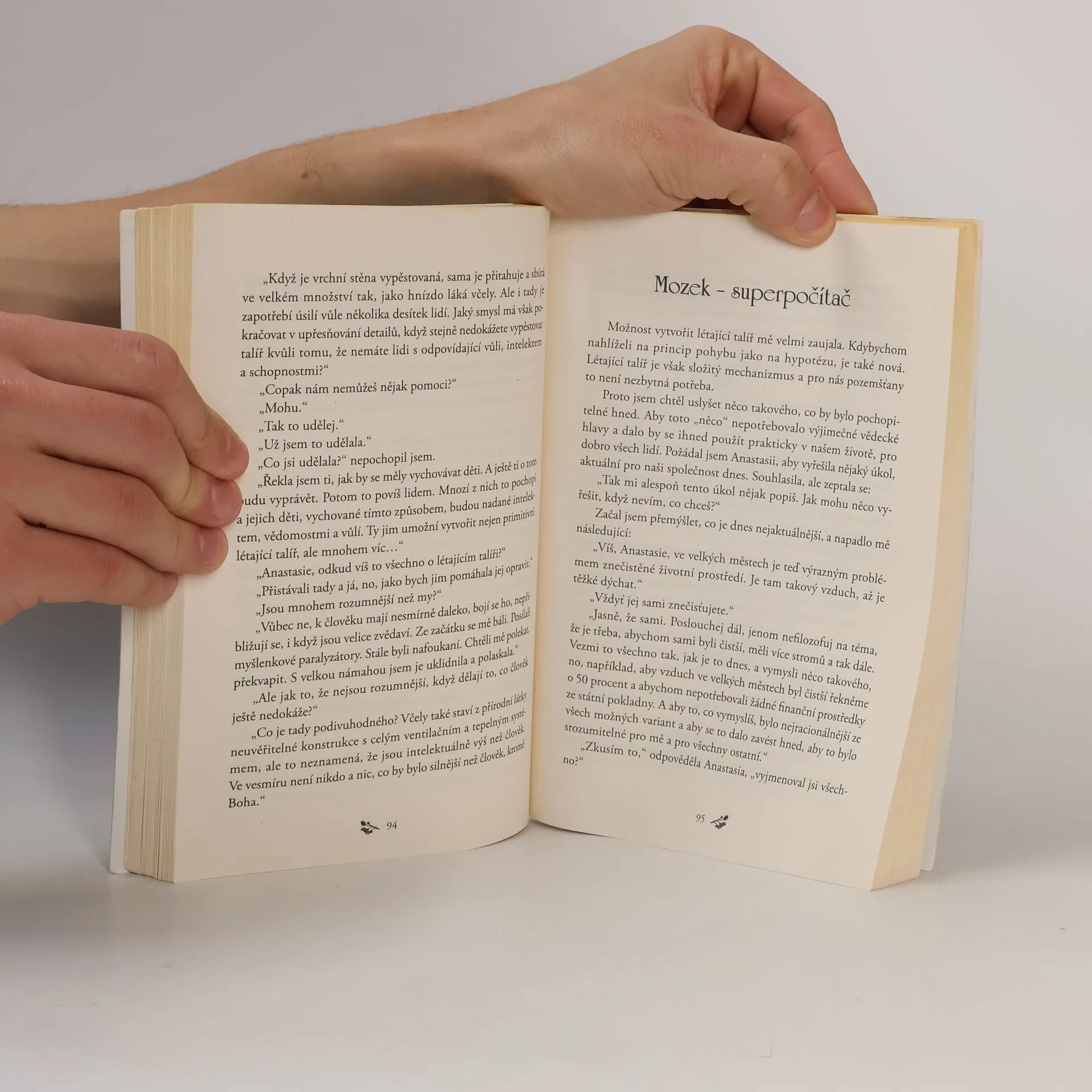 V první knize mladá poustevnice Anastasia odpovídá na řadu otázek týkajících se zdravého způsobu života, šťastného vztahu mezi mužem a ženou, početí a výchovy dětí. Zároveň poskytuje užitečné rady v oblasti zahrádkaření a ekologie, které jsou geniální svou jednoduchostí.