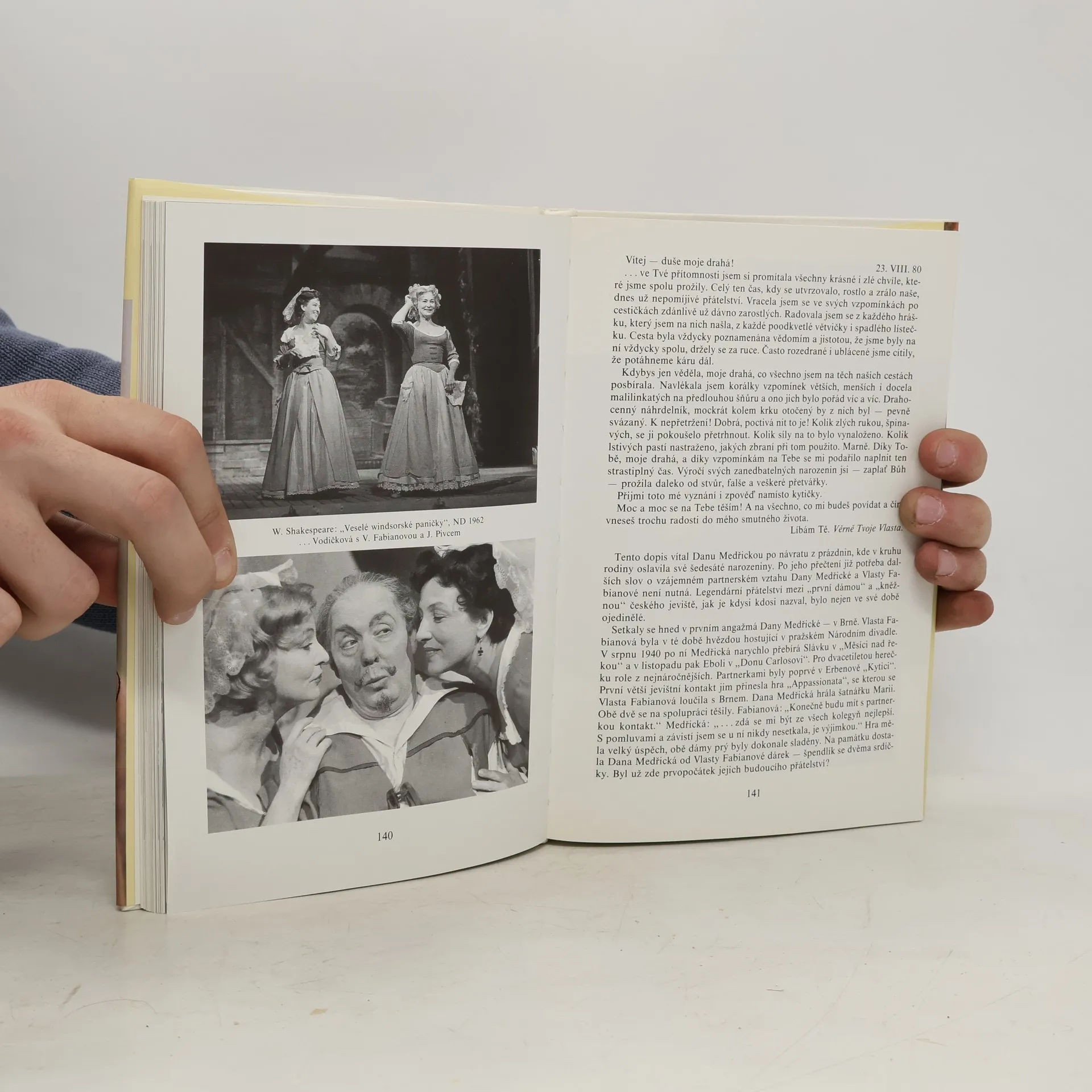 Dana Medřická vytvořila na jevištích, ve filmech, v rozhlasu a televizi na sta dramatických postav. V trvalé paměti obecenstva zůstala především její divadelní a filmová Slávka Hlubinová, Líza z Obchodníka s deštěm, Erži Orbánová z Kočičí hry a titulní postava ze hry Romeo a Julie na konci listopadu. Role, do nichž vložila kus vlastního života a mimořádný prožitek, který divák vycítil. Vznikla vzácná "zpětná vazba", dojem, že herečka oslovuje právě jeho a on má potřebu jí za to poděkovat, svěřit se se svými starostmi, zkrátka reagovat. Svědčí o tom desítky soukromých dopisů, jež Dana Medřická od neznámých lidí dostávala a bylo-li vhodné, i na ně odpovídala. Je zvláštní, že teprve nyní, poprvé, vychází tato kniha - vzpomínka. Otevírá ji vlastní vyprávění umělkyně, přibližující její dětství, dospívání a počáteční angažmá v Brně, Plzni, pak v pražské Uranii. Psala je jako úvodní kapitoly své chystané knihy, již však nestihla dokončit - zůstala torzem. Svazek uzavírá rovněž svědectví osobní - jejího syna Václava Vydry nejml., třetího pokračovatele tradice slavného hereckého rodu. Mezi nimi jsou kapitoly sestavené divadelní kritičkou Bohumilou Spisarovou z rozličných dokumentů, kritik, deníků. Plasticky z nich vystupuje osobnost Dany Medřické, herečky, která skutečně byla "naše".