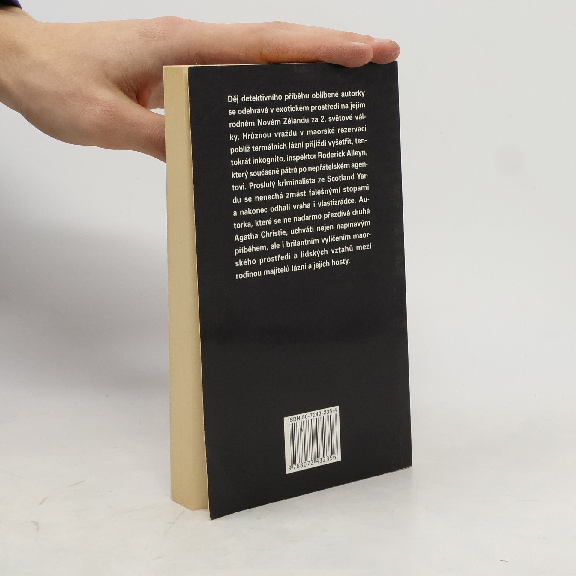 Záhadné případy inspektora Alleyna. Děj detektivního příběhu oblíbené autorky se odehrává v exotickém prostředí na jejím rodném Novém Zélandu za 2. světové války. Hrůznou vraždu v maorské rezervaci poblíž termálních lázní přijíždí vyšetřit, tentokrát inkognito, inspektor Roderick Alleyn, který současně pátrá po nepřátelském agentovi. Proslulý kriminalista ze Scotland Yardu se nenechá zmást falešnými stopami a odhalí vraha i vlastizrádce. Autorka, které se ne nadarmo přezdívá druhá Agatha Christie, uchvátí napínavým příběhem i brilantním vylíčením maorského prostředí.