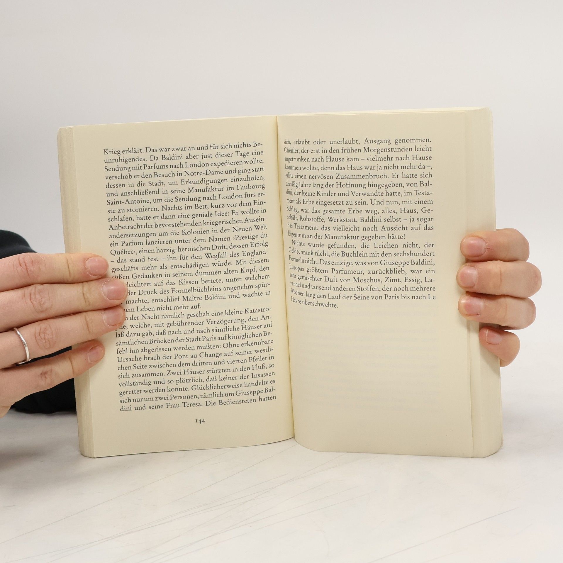 Von Jean-Baptiste Grenouille, dem finsteren Helden, sei nur verraten, daß er 1738 in Paris, in einer stinkigen Fischbude, geboren wird. Die Ammen, denen das Kerlchen an die Brust gelegt wird, halten es nur ein paar Tage mit ihm aus: Er sei zu gierig, außerdem vom Teufel besessen, wofür es untrügliche Indizien gebe: den fehlenden Duft, den unverwechselbaren Geruch, den Säuglinge auszuströmen pflegen.