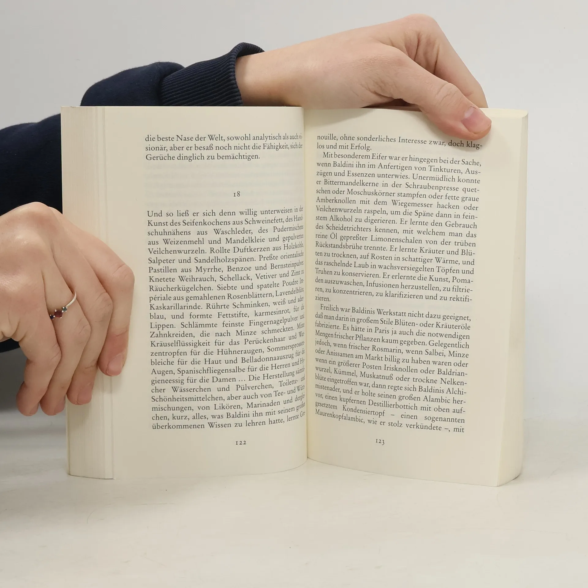 Von Jean-Baptiste Grenouille, dem finsteren Helden, sei nur verraten, daß er 1738 in Paris, in einer stinkigen Fischbude, geboren wird. Die Ammen, denen das Kerlchen an die Brust gelegt wird, halten es nur ein paar Tage mit ihm aus: Er sei zu gierig, außerdem vom Teufel besessen, wofür es untrügliche Indizien gebe: den fehlenden Duft, den unverwechselbaren Geruch, den Säuglinge auszuströmen pflegen.