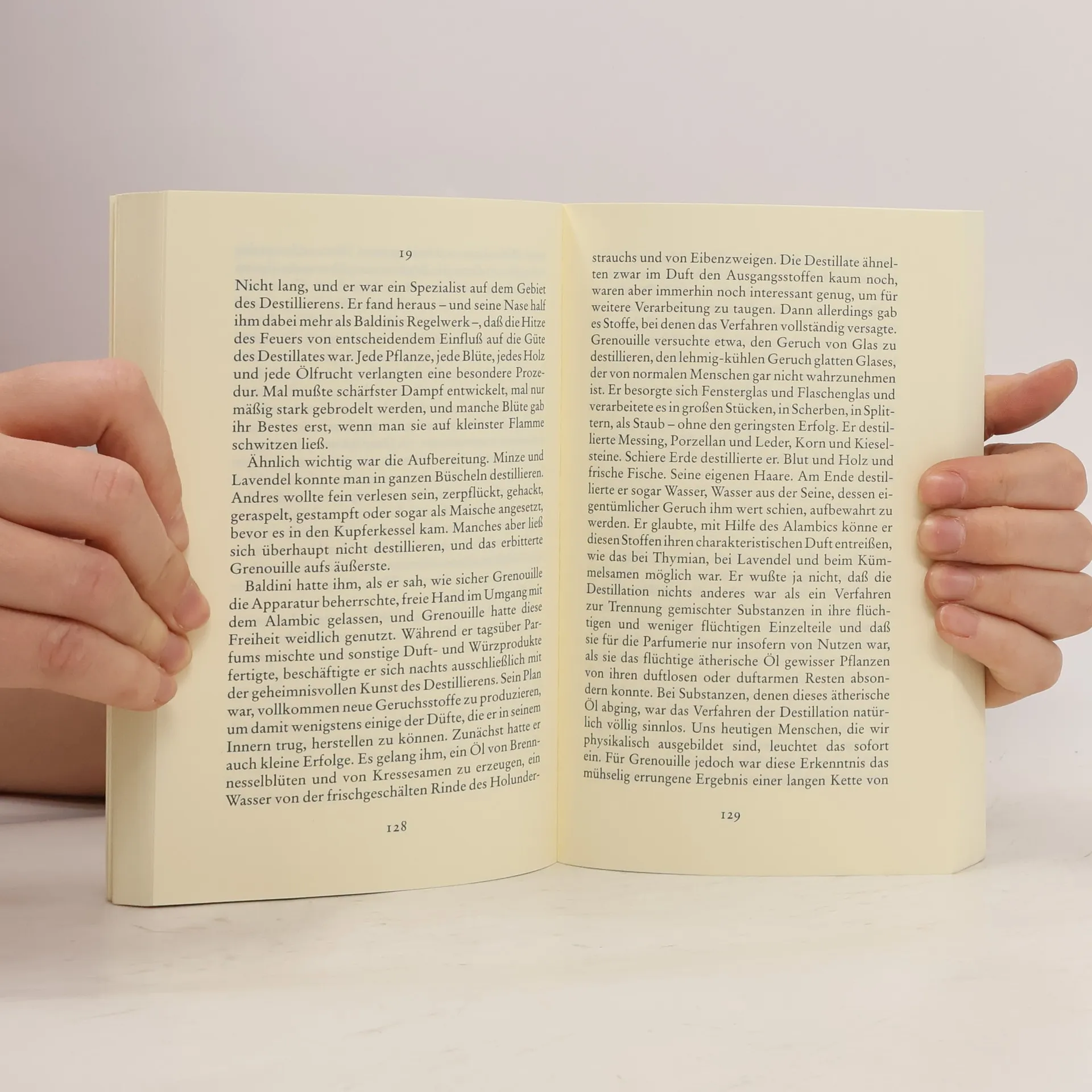 Von Jean-Baptiste Grenouille, dem finsteren Helden, sei nur verraten, daß er 1738 in Paris, in einer stinkigen Fischbude, geboren wird. Die Ammen, denen das Kerlchen an die Brust gelegt wird, halten es nur ein paar Tage mit ihm aus: Er sei zu gierig, außerdem vom Teufel besessen, wofür es untrügliche Indizien gebe: den fehlenden Duft, den unverwechselbaren Geruch, den Säuglinge auszuströmen pflegen.