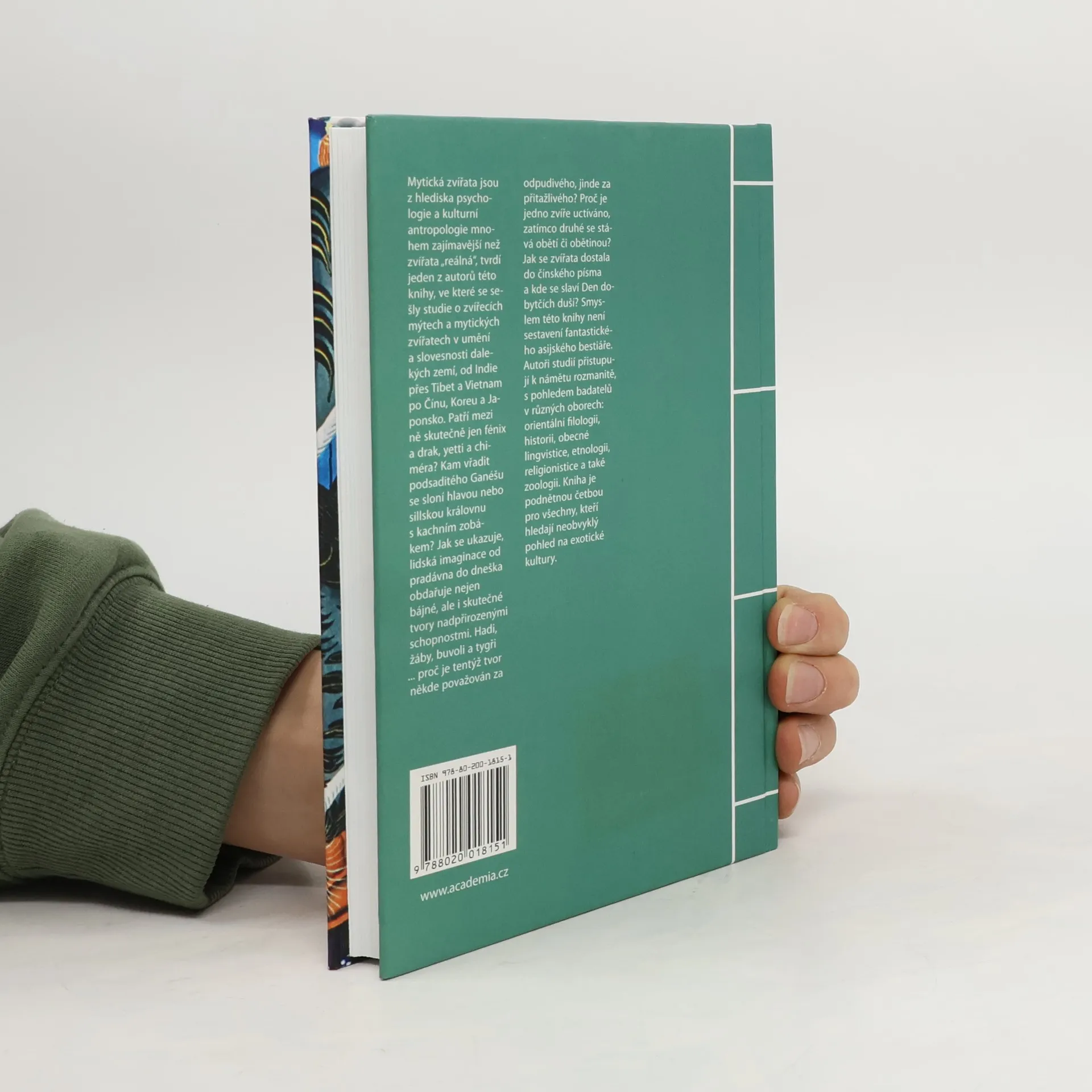 Mytická zvířata jsou z hlediska psychologie a kulturní antropologie mnohem zajímavější než zvířata „reálná“, tvrdí jeden z autorů této knihy, ve které se sešly studie o zvířecích mýtech a mytických zvířatech v umění a slovesnosti dalekých zemí, od Indie přes Tibet a Vietnam po Čínu, Koreu a Japonsko. Patří mezi ně skutečně jen fénix a drak, yetti a chiméra? Kam vřadit podsaditého Ganéšu se sloní hlavou nebo sillskou královnu s kachním zobákem? Jak se ukazuje, lidská imaginace od pradávna do dneška obdařuje nejen bájné, ale i skutečné tvory nadpřirozenými schopnostmi. Hadi, žáby, buvoli a tygři ... proč je tentýž tvor někde považován za odpudivého, jinde za přitažlivého? Proč je jedno zvíře uctíváno, zatímco druhé se stává obětí či obětinou? Jak se zvířata dostala do čínského písma a kde se slaví Den dobytčích duší? Smyslem této knihy není sestavení fantastického asijského bestiáře. Autoři studií přistupují k námětu rozmanitě, s pohledem badatelů v různých oborech: orientální filologii, historii, obecné lingvistice, etnologii, religionistice a také zoologii. Kniha je podnětnou četbou pro všechny, kteří hledají neobvyklý pohled na exotické kultury.