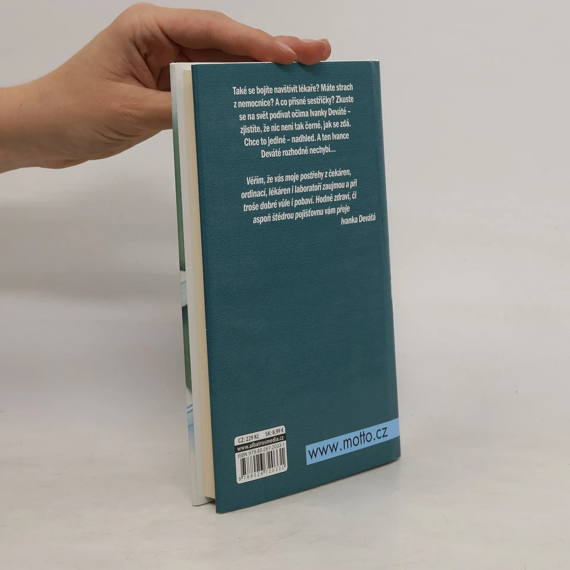 Knížka úsměvných postřehů z oblasti zdravotnictví, tak, jak oblíbená česká herečka získávala zkušenosti jako pacientka v nejrůznějších zdravotnických zařízeních. Oddechová knížka má stejný charakter jako autorčiny ostatní texty, vyznačuje se vtipem, jazykovou kulturou a hlavně schopností dívat se s ironickým nadhledem a úsměvem nejen na své okolí, ale hlavně i sama na sebe.