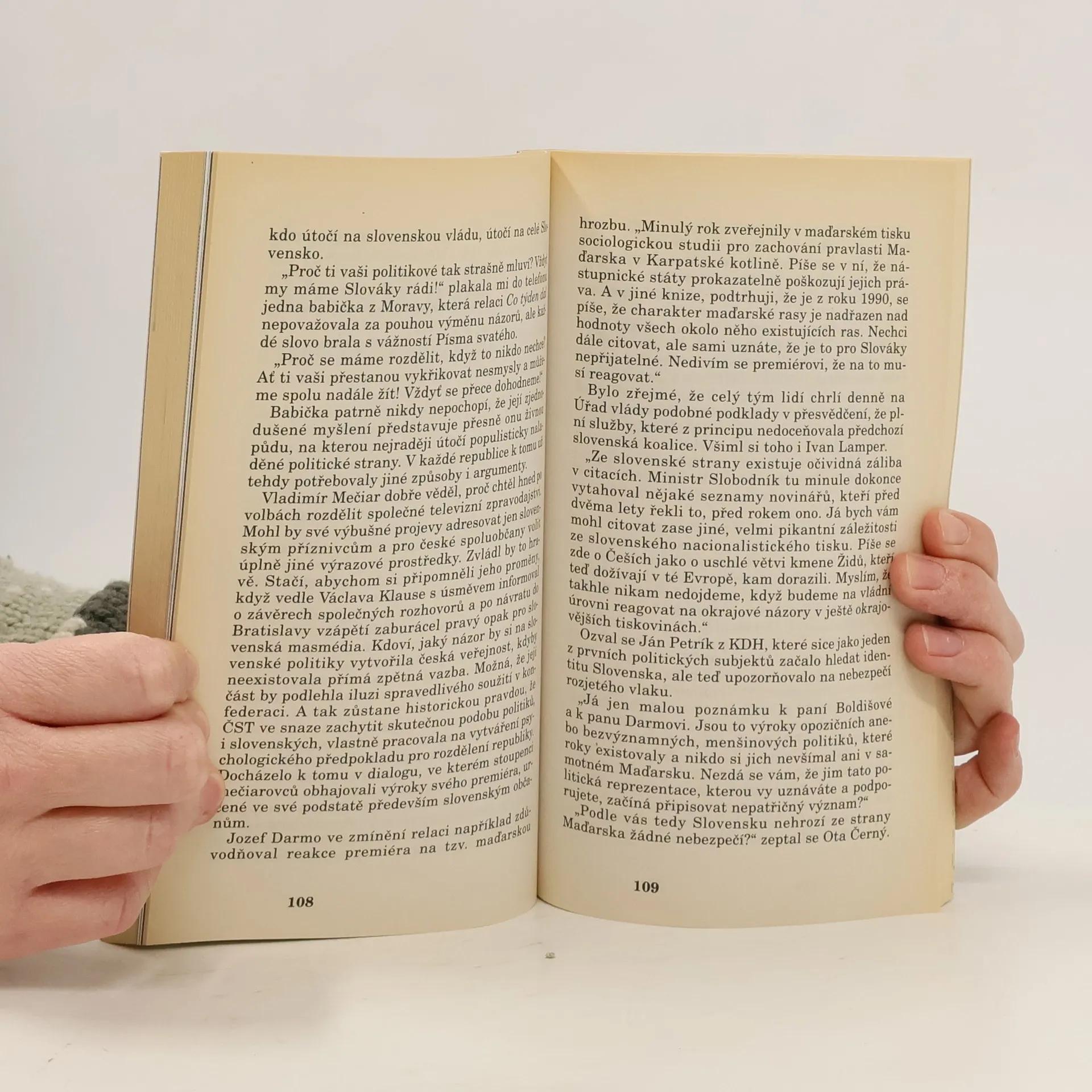 Politika je vážná věc, ale ne natolik, aby u ní člověk musel ztrácet smysl pro humor, nadhled a odstup. 200 stran + 16 stran černobílých fotografií. Foto ©ČTK, Daniela Sýkorová, 1993. 1. vydání.