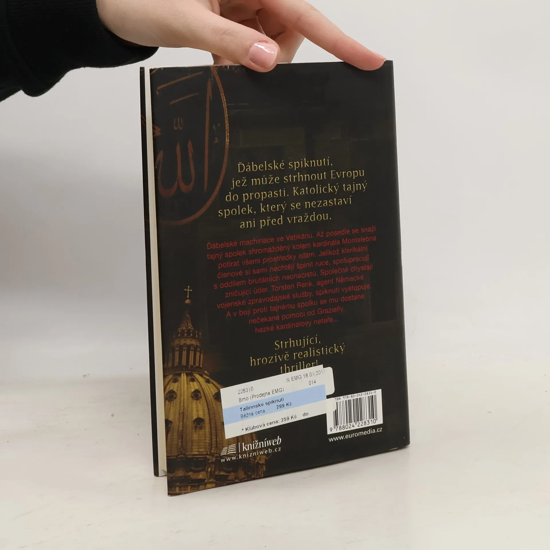 Ďábelské machinace ve Vatikánu. Až posedle se snaží tajný spolek shromážděný kolem kardinála Monteleona potírat všemi prostředky islám. Jelikož klerikální členové si sami nechtějí špinit ruce, spolupracují s oddílem brutálních neonacistů. Společně chystají zničující úder. Torsten Renk, mladý agent Německé vojenské zpravodajské služby, spiknutí vystopuje. A v boji proti tajnému spolku se mu dostane nečekané pomoci od Grazielly, hezké kardinálovy neteře…