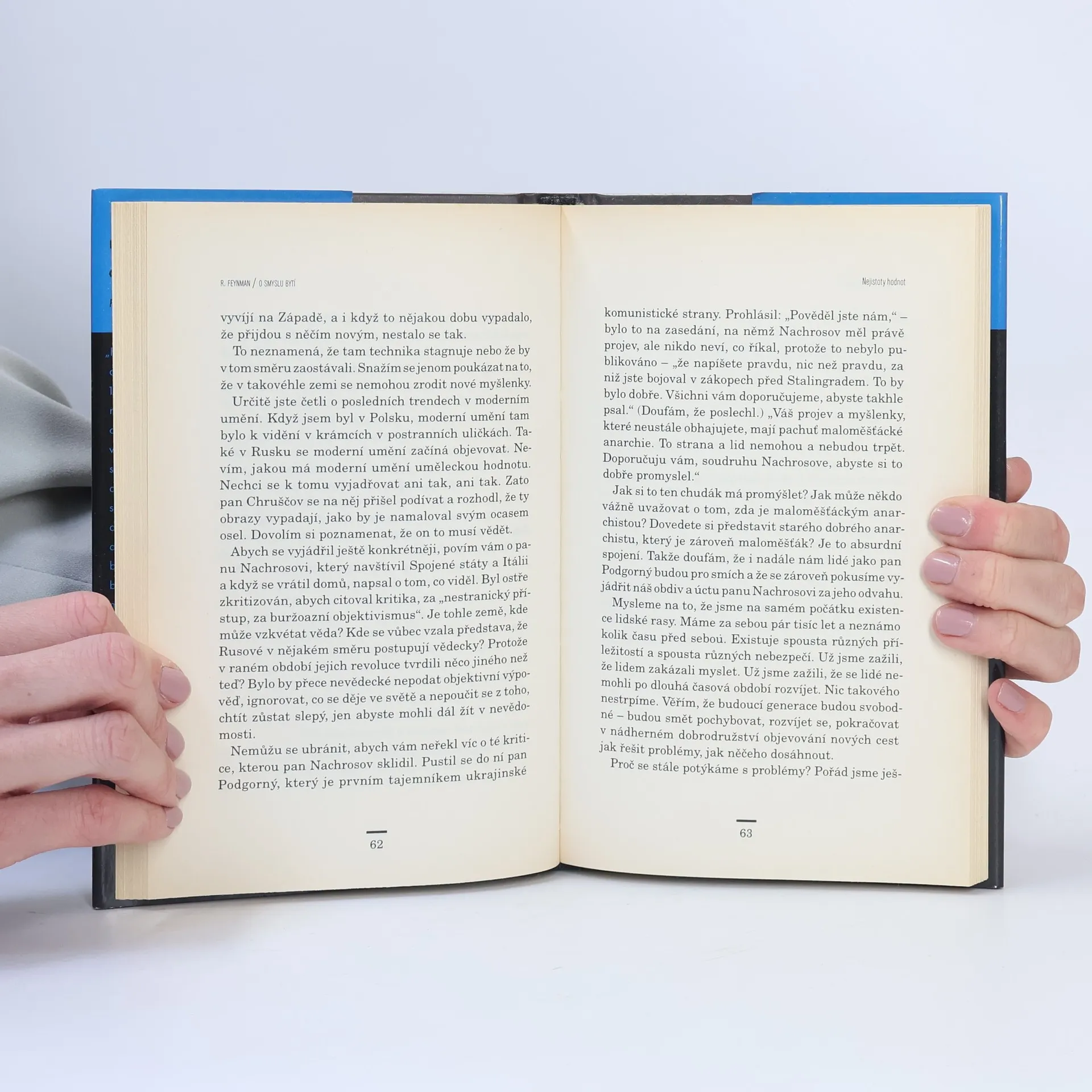 „Pan Feynman nežertuje“, tak Timothy Ferris v roce 1998 vystihl první knižní vydání souboru Feynmanových přednášek O smyslu bytí. Kniha obsahuje tři přednášky z roku 1963, které Feynman pronesl na Washingtonské univerzitě, zaměřené na laickou veřejnost. Světoznámý fyzik se zamýšlel nad vztahem vědy, filozofie a náboženství, a nad tím, jak nejistota hodnot ovlivňuje naše vyhlídky do budoucnosti. Připomněl, že největší hrůzy byly vykonány nesprávným pochopením filozofických idejí. Čtenář se dozví, co si Feynman myslel o „věcech veřejných“, jeho občanské názory, a jakou roli přisuzoval kráse a umění v lidském životě. Sleduje jeho postřehy o společnosti, úvahy o konfliktu mezi vědou a náboženstvím, míru a válce, fascinaci létajícími talíři, zázračným léčitelstvím, telepatií a nedůvěře k politikům. Autor poukazuje na spojitost vědeckého bádání a demokracie, zdůrazňuje otevřenost novým nápadům a teorím, odvahu pochybovat a opustit nevyhovující teorie. Otevřené a svobodné myšlení, které je základem vědeckého přístupu, je neslučitelné s totalitou. Tyto přednášky byly proslovené v době rozděleného světa studenou válkou. Na závěr Feynman vyzdvihuje encykliku papeže Jana XXIII. Pacem in Terris jako nejpozoruhodnější událost doby.