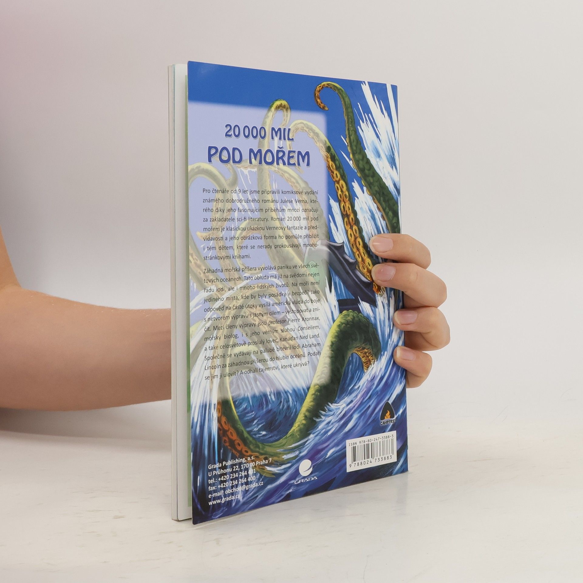 Pro čtenáře od 9 let jsme připravili komiksové vydání známého dobrodružného románu Julese Verna, kterého díky jeho fascinujícím příběhům mnozí označují za zakladatele sci-fi literatury. Román 20 000 mil pod mořem je klasickou ukázkou Verneovy fantazie a předvídavosti a jeho obrázková forma ho pomůže přiblížit i těm dětem, které se nerady prokousávají mnohostránkovými knihami. Záhadná mořská příšera vyvolává paniku ve všech světových oceánech. Tato obluda má již na svědomí nejen řadu lodí, ale i mnoho lidských životů. Na moři není jediného místa, kde by byly posádky v bezpečí! Jako odpověď na časté útoky vysílá americká vláda do boje s netvorem výpravu s jasným cílem - vystopovat a zničit. Mezi členy výpravy jsou profesor Pierre Aronnax, mořský biolog, i s jeho věrným sluhou Conseilem, a také celosvětově pro-slulý lovec, Kanaďan Ned Land. Společně se vydávají na palubě bitevní lodi Abraham Lincoln za záhadnou příše-rou do hlubin oceánů. Podaří se jim ji ulovit? A odhalí tajemství, které ukrývá?