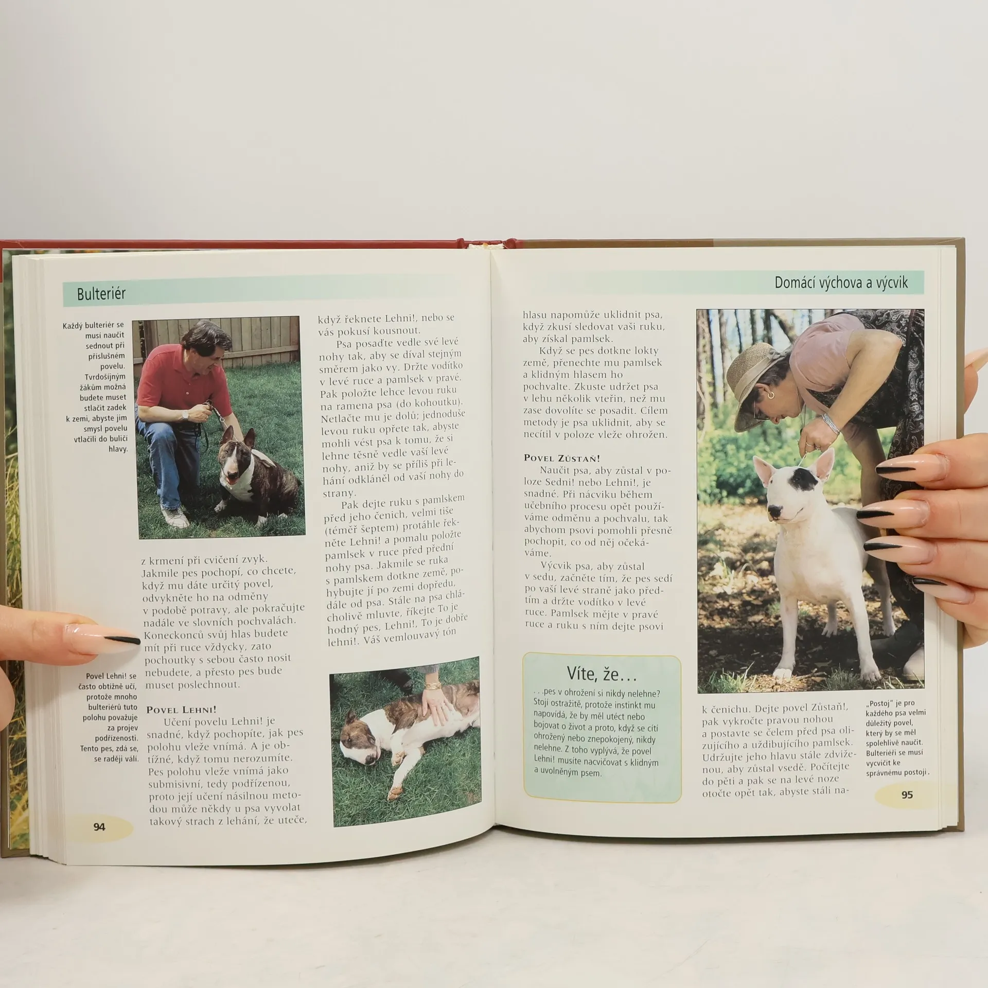 Velmi zajímavý text doplňuje přes 135 barevných fotografií, které jsou stejně poučné jako přitažlivé. Užitečné pokyny a zajímavé informace jsou zdůrazněny tak, aby umožnily snadný přístup čtenáře ke všemu, co potřebuje vědět o životě s bulteriérem. Ať už jde o problém s výcvikem k čistotnostim s alergiemi nebo blechami, tato kniha je návodem, jak potížím předcházet, poskytne čtenáři informace, které bude jako majitel bulteriéra potřebovat od jeho štěněcího věku až po stáří psa. Je doporučena špičkovými chovateli a cvičiteli. Pečlivé pročtení této knihy je prvním správným krokem každého nového majitele bulteriéra.