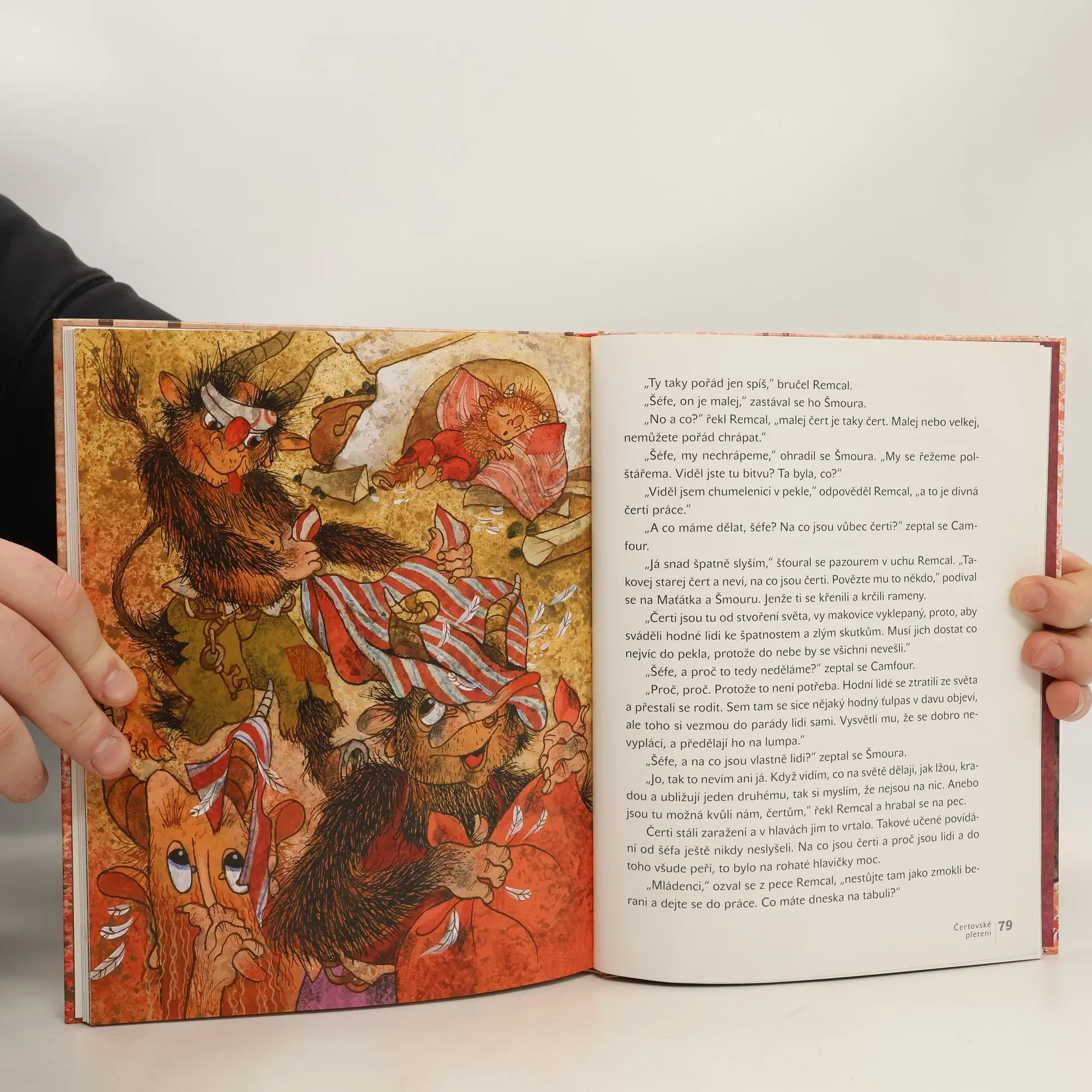 Mocný vládce Remcal, brepta Šmoura, kulhavý rozumbrada Camfour, koktavý Maťátko a malý neposeda Prskavka jsou pěkně povedená čertiska. Nejradši lenoší v teplém peklíčku, když však jde o něco dobrého na zub nebo nějakou lumpárničku, hned ožijí. A protože jsou to popletové, o rozruch a taškařice je postaráno. U všech čertů, to zas byla mela, když se vyhrnuli na svět!. A to by v tom byl čert, abyste se s touhle rohatou knížkou nepobavili! Knížku napsal Jiří Kahoun, autor příběhů o včelích medvídcích.