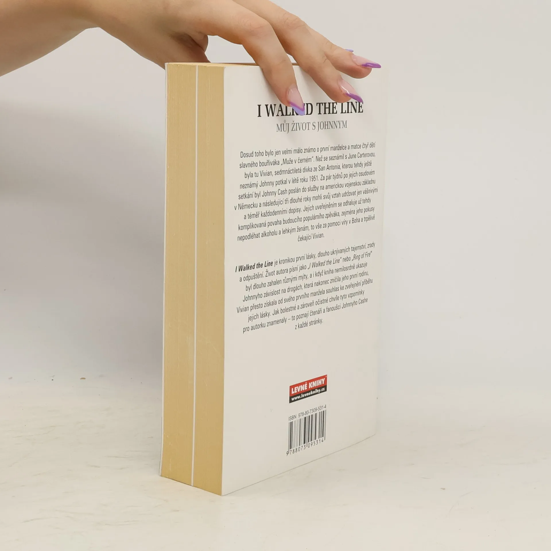 Dosud toho bylo jen velmi málo známo o první manželce a matce čtyř dětí slavného bouřliváka ,,Muže v černém". Než se seznámil s June Carterovou, byla tu Vivian, sedmnáctiletá dívka ze San Antonia, kterou tehdy ještě neznámý Johnny potkal v létě roku 1951. Za pár týdnů po jejich osudovém setkání byl Johnny Cash poslán do služby na americkou vojenskou základnu v Německu a následující tři dlouhé roky mohli svůj vztah udržovat jen vášnivými a téměř každodenními dopisy. Jejich uveřejněním se odhaluje už tehdy komplikovaná povaha zpěváka, zejména jeho pokusy nepodléhat alkoholu a lehkým ženám, to vše za pomocí víry v Boha a trpělivě čekající Vivian. I Walked the Line je kronikou první lásky, dlouho ukrývaných tajemství, zrady a odpuštění. Život Johnnyho Cashe byl dlouho zahalen růunými mýty, a i když kniha nemilosrdně ukazuje Johnnyho závislost na drogách, která nakonec zničila jeho první rodinu, Vivian přesto získala od svého prvního manžela souhlas ke zveřejnění příběhu. Jak bolestné a zároveň očistné chvíle tyto vzpomínky pro autorku znamenaly, to poznají čtenáři z každé stránky.