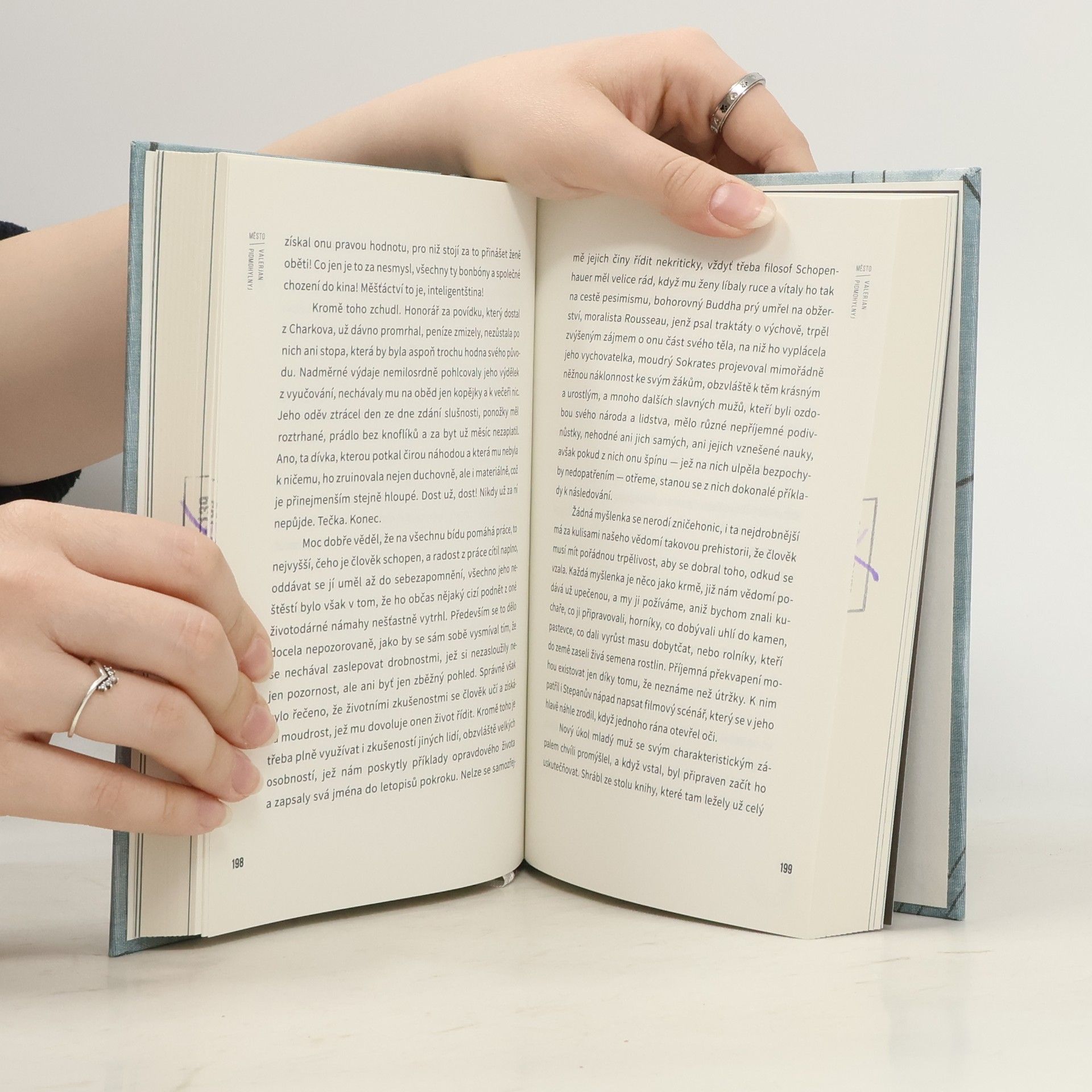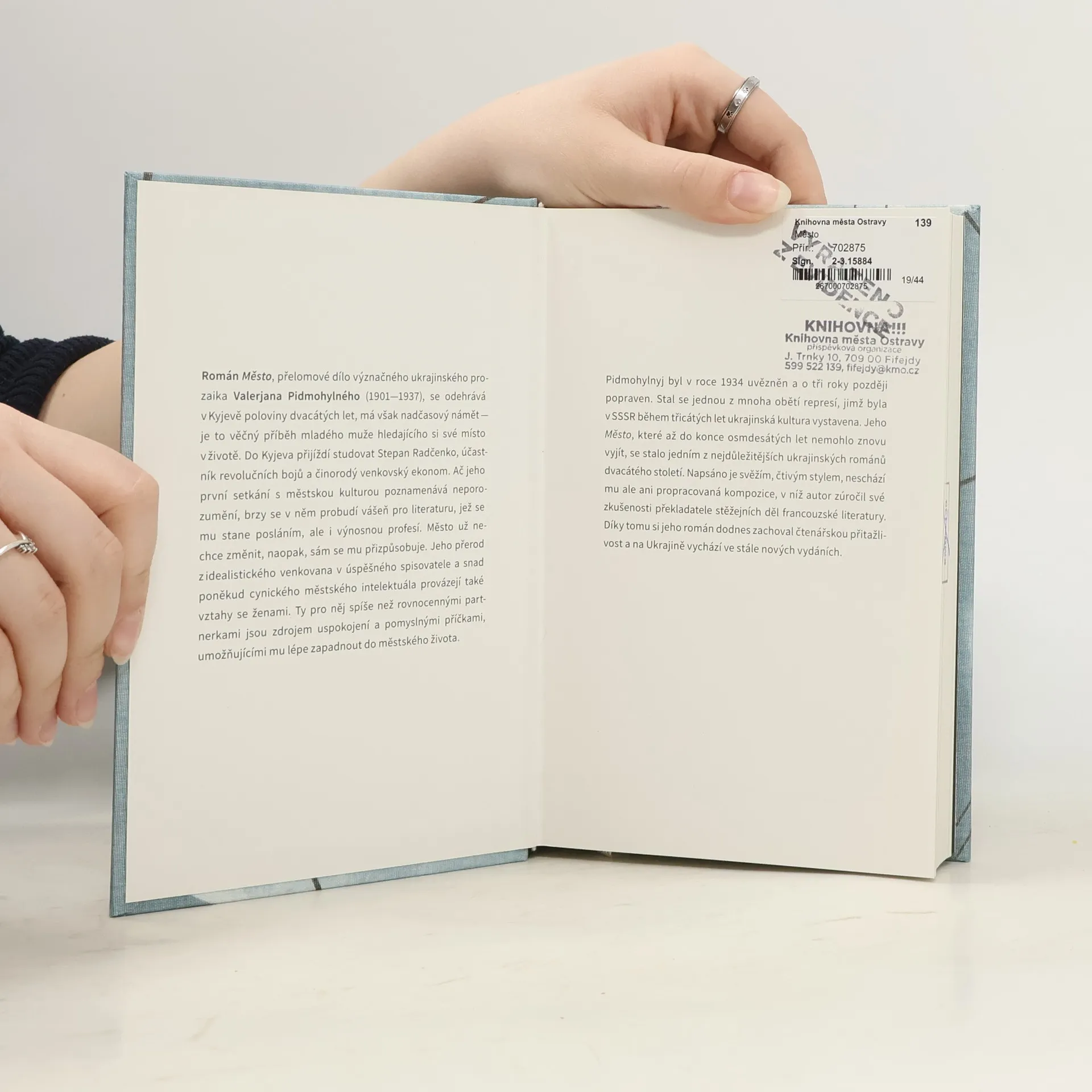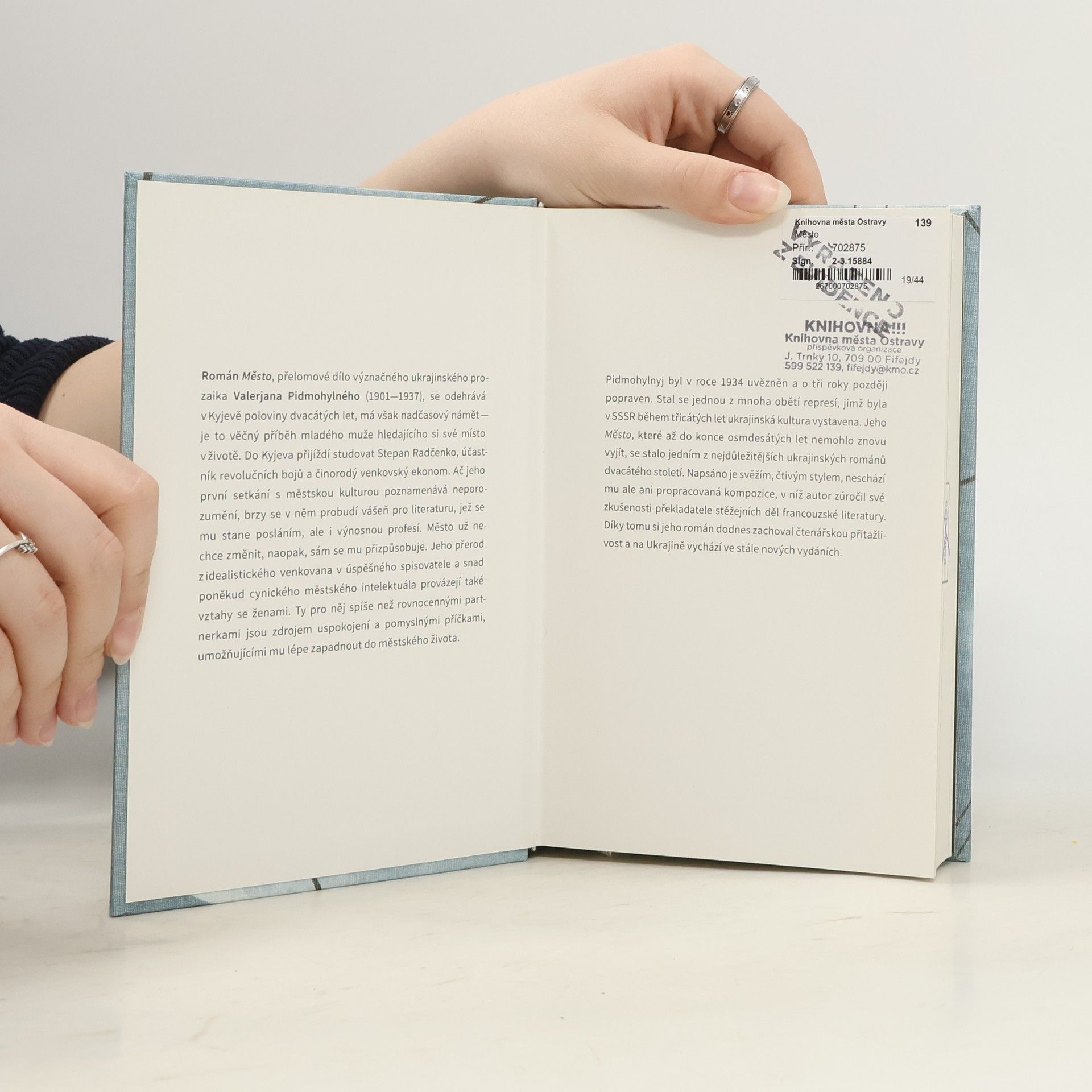 Román Město, přelomové dílo význačného ukrajinského prozaika Valerjana Pidmohylného (1901—1937), se odehrává v Kyjevě poloviny dvacátých let, má však nadčasový námět — je to věčný příběh mladého muže hledajícího si své místo v životě. Do Kyjeva přijíždí studovat Stepan Radčenko, účastník revolučních bojů a činorodý venkovský ekonom. Ač jeho první setkání s městskou kulturou poznamenává neporozumění, brzy se v něm probudí vášeň pro literaturu, jež se mu stane posláním, ale i výnosnou profesí. Město už nechce změnit, naopak, sám se mu přizpůsobuje. Jeho přerod z idealistického venkovana v úspěšného spisovatele a snad poněkud cynického městského intelektuála provázejí také vztahy se ženami. Ty pro něj spíše než rovnocennými partnerkami jsou zdrojem uspokojení a pomyslnými příčkami, umožňujícími mu lépe zapadnout do městského života. Pidmohylnyj byl v roce 1934 uvězněn a o tři roky později popraven. Stal se jednou z mnoha obětí represí, jimž byla v SSSR během třicátých let ukrajinská kultura vystavena. Jeho Město, které až do konce osmdesátých let nemohlo znovu vyjít, se stalo jedním z nejdůležitějších ukrajinských románů dvacátého století. Napsáno je svěžím, čtivým stylem, neschází mu ale ani propracovaná kompozice, v níž autor zúročil své zkušenosti překladatele stěžejních děl francouzské literatury. Díky tomu si jeho román dodnes zachoval čtenářskou přitažlivost a na Ukrajině vychází ve stále nových vydáních.