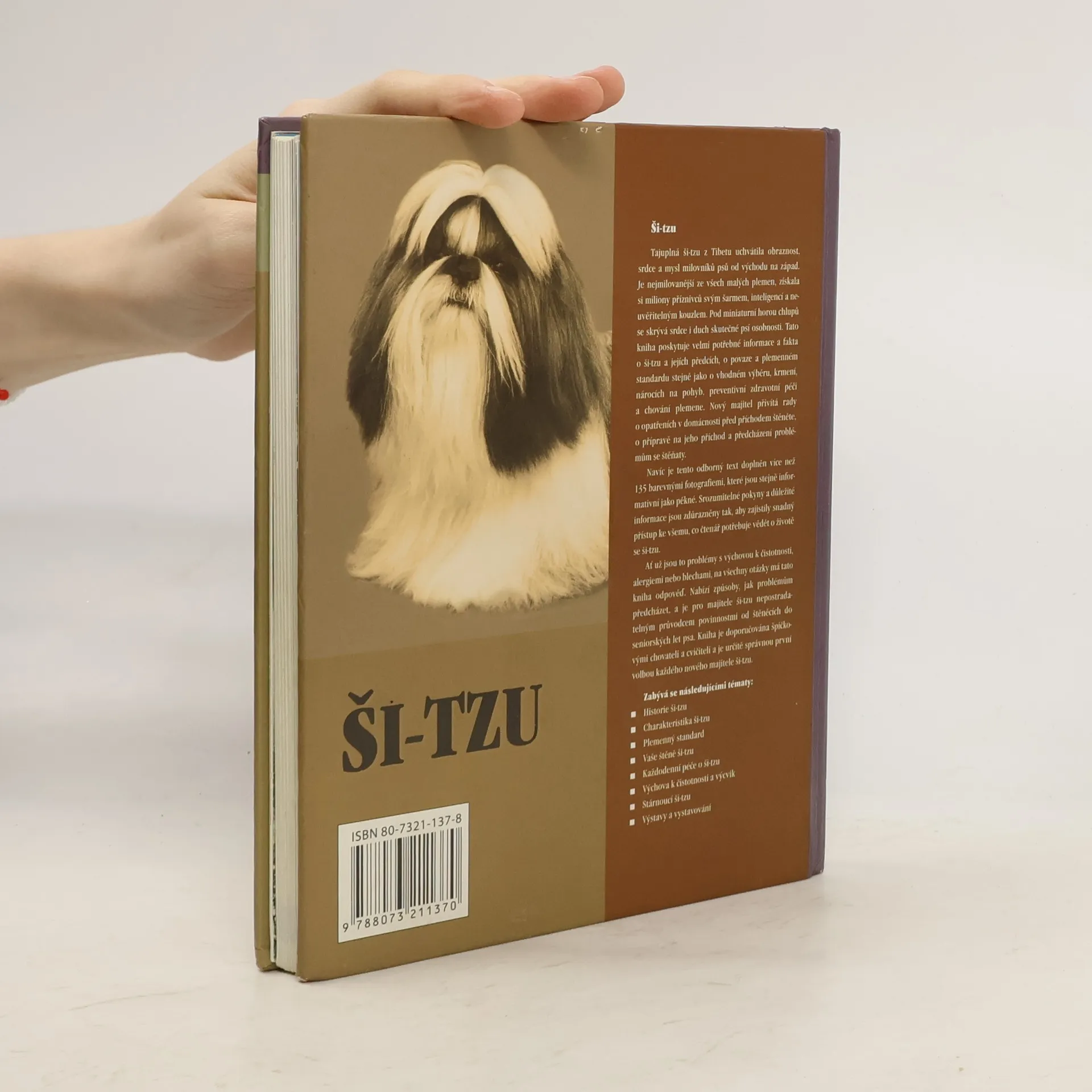 Srozumitelné pokyny a důležité rady jsou zdůrazněny tak, aby zajistily snadný přístup ke všemu, co čtenář potřebuje vědět. Publikace provází majitele životem s ši-tzu od prvních kroků (příprava domova před příchodem štěněte, aklimatizace, předcházení problémů se štěňaty, výchova) až po seniorský věk psa. Radí v každodenní péči (správné složení a množství stravy, pohyb, péče vnější vzhled psa - zejména o bohatou srst, péče o jeho zdraví, prevence onemocnění) i ve speciálních případech. Ať už se objeví problémy s alergiemi, blechami nebo chováním psa, na všechny otázky přináší kniha odpověď. Samozřejmě nechybí ani kapitoly z mimořádně zajímavé historie plemene, informace o vystavování (typy přehlídek, výchova psa k vystupování ve výstavním kruhu), charakteristika plemene a podrobný popis schváleného plemenného standardu. Text je doprovázen množstvím zdařilých barevných fotografií a přehledným rejstříkem.