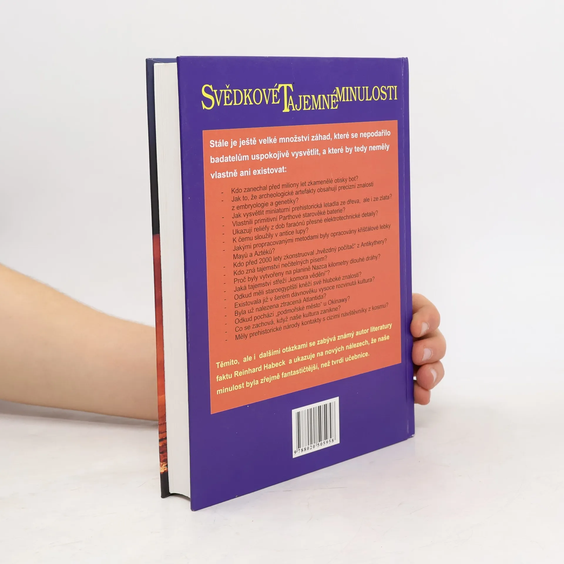 S podtitulem: Co v sobě skrývají záhady dávnověku? Stále je ještě velké množství záhad, které se nepodařilo badatelům uspokojivě vysvětlit, a které by tedy vlastně neměly existovat:- Kdo zanechal před miliony lety zkamenělé otisky bot?- Jak to, že archeologické artefakty obsahují precizní znalosti z embryologie a genetiky?- Jak vysvětlit miniaturní prehistorická letadla ze dřeva, ale i ze zlata?- Vlastnili primitivní Parthové prehistorické baterie?- Ukazují reliéfy z dob faraónů přesné elektrotechnické detaily?- K čemu sloužily v antice lupy?- Jakými propracovanými metodami byly opracovány křišťálové lebky Mayů a Aztéků?- Kdo před 2000 let zkonstruoval „hvězdný počítač“ z Antikythéry?- Kdo zná tajemství nečitelných písem?- Proč byly na planině Nazca vytvořeny kilometry dlouhé dráhy?- Jaká tajemství střeží „komora vědění“?- Odkud měli staroegyptští kněží své hluboké znalosti?- Existovala již v šerém dávnověku vysoce rozvinutá kultura?- Byla už nalezena ztracená Atlantida?- Odkud pochází „podmořské město“ u Okinawy?- Co se zachová, když naše kultura zanikne?- Měly prehistorické národy kontakty s cizími návštěvníky z kosmu? Těmito, ale i dalšími otázkami se zabývá známý autor literatury faktu Reinhard Habeck – a ukazuje na nových nálezech, že naše minulost byla zřejmě fantastičtější, než tvrdí učebnice.