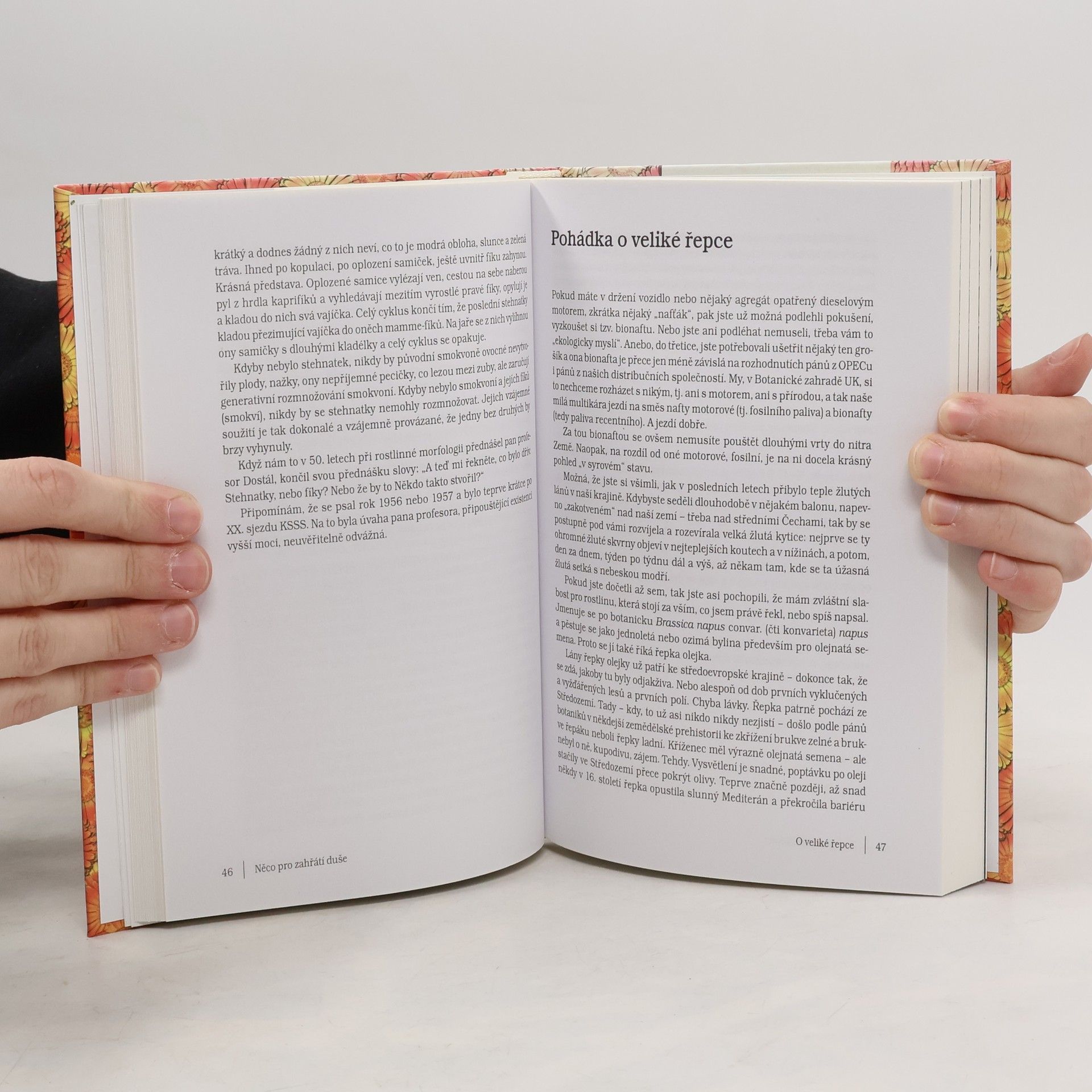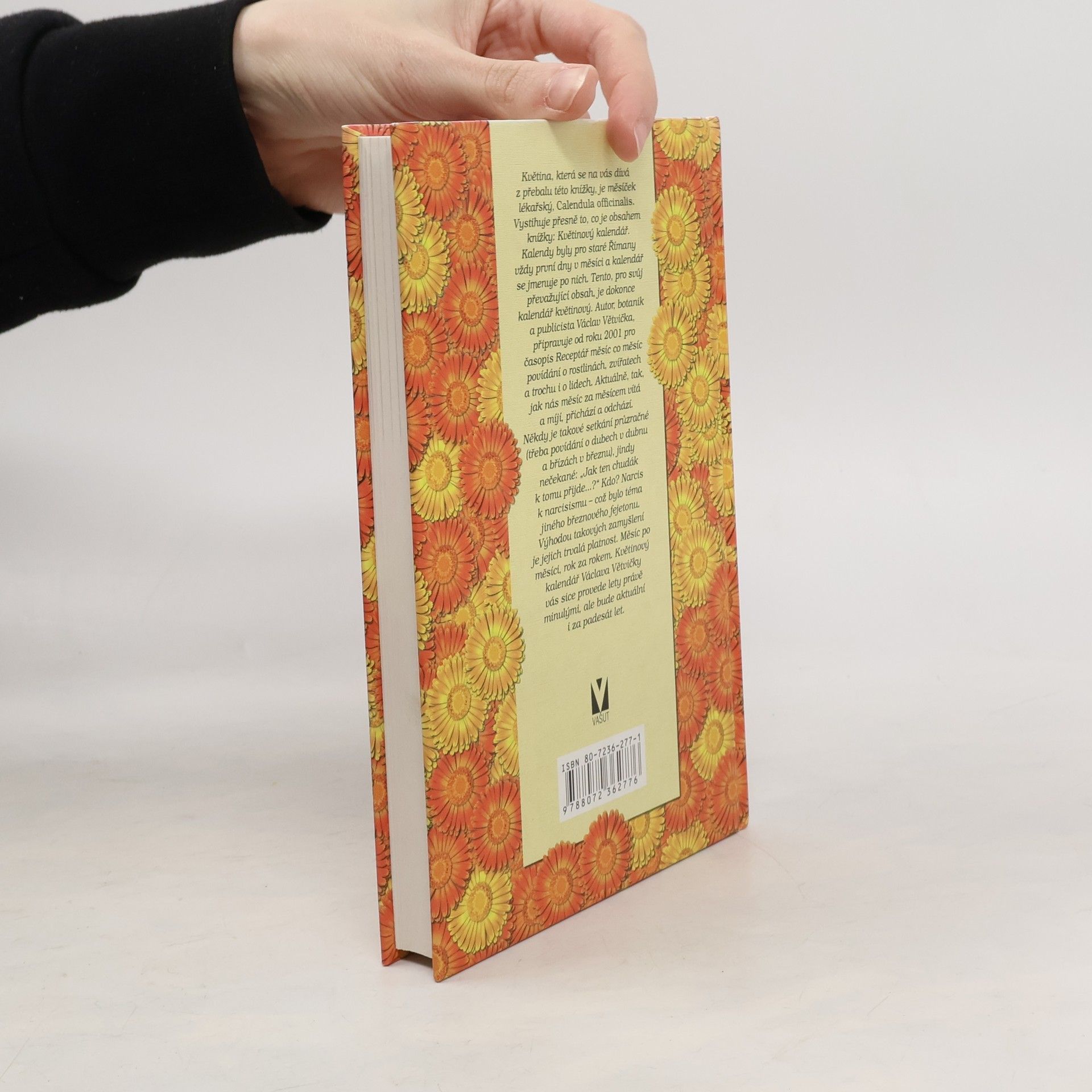 Květina, která se na vás dívá z přebalu této knížky je měsíček lékařský, "Calendula officinalis". Aniž se jakkoliv domlouvali autor, nakladatel a výtvarník, vystihuje přesně to, co je obsahem knížky: Květinový kalendář. Autor, botanik a publicista Václav Větvička připravuje od roku 2001 pro časopis Receptář měsíc co měsíc povídání o rostlinách, zvířatech a trochu i o lidech. Někdy je takové setkání průzračné (třeba povídání o dubech v dubnu a břízách v březnu), jindy nečekané: "Jak ten chudák k tomu přijde...?" Kdo? Narcis k narcisismu - což bylo téma jiného březnového fejetonu.