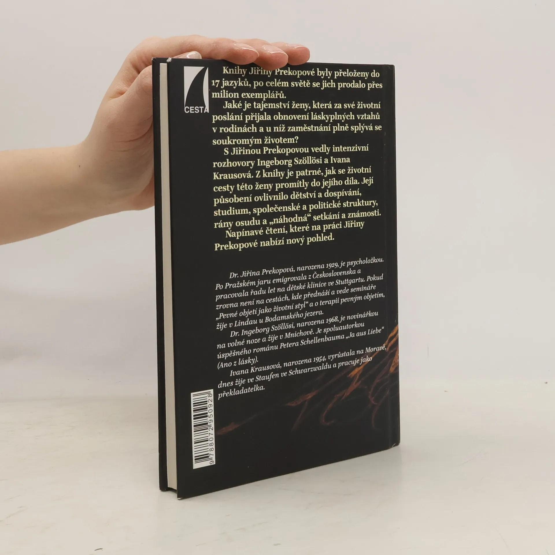 Rozhovor s Ingeborg Szöllösi a Ivanou Krausovou. Rozhovory s významnou psycholožkou, která svou prací pomohla řadě rodičů a dětí. Kniha se snaží poodhalit tajemství ženy, která si jako životní cíl zvolila obnovu lásky v rodinách. Intenzivní rozhovory, které nás provedou životem Jiřiny Prekopové i v jeho společensko-politickém kontextu v bývalém Československu a později v Německu, vedly Ingeborg Szöllösi a Ivana Krausová.