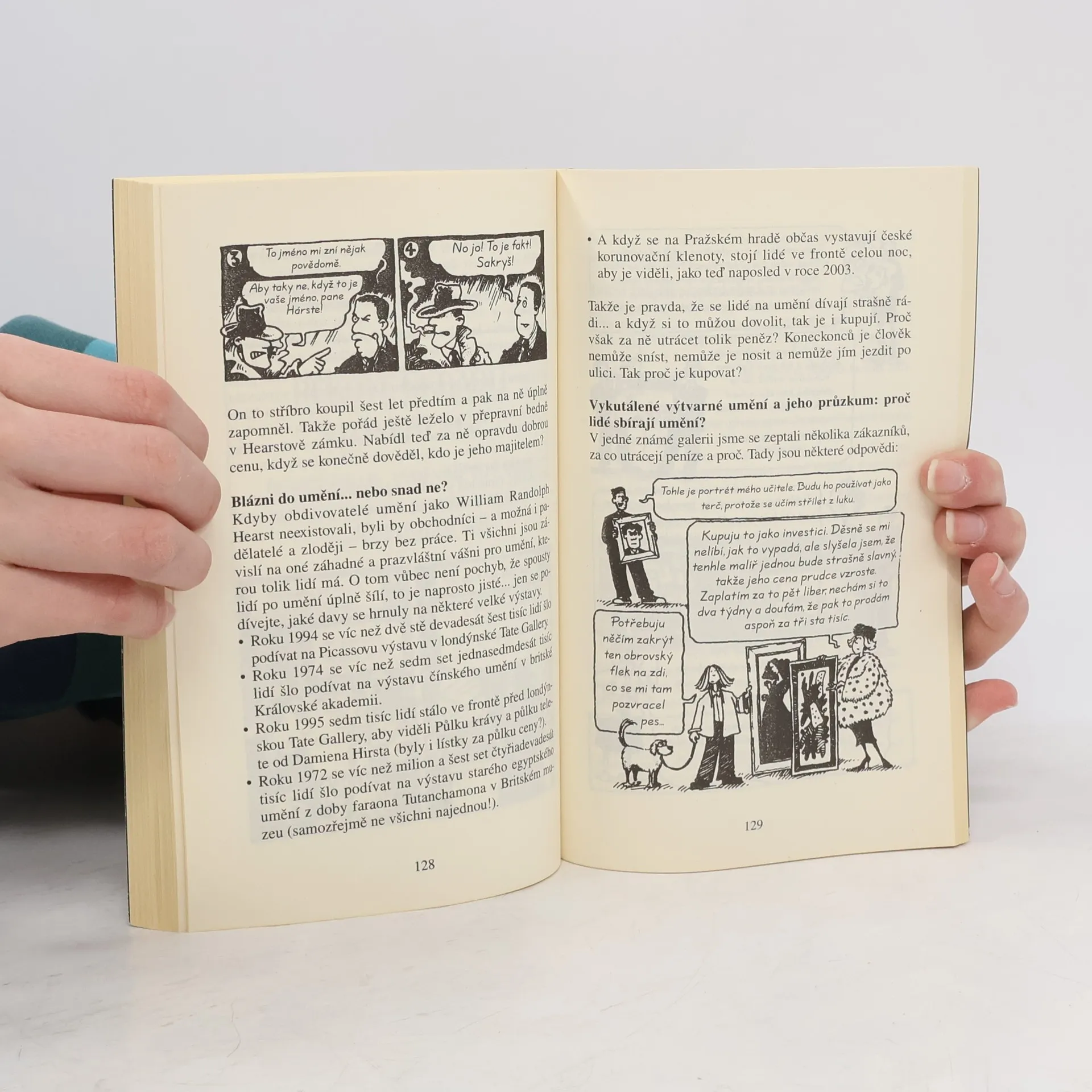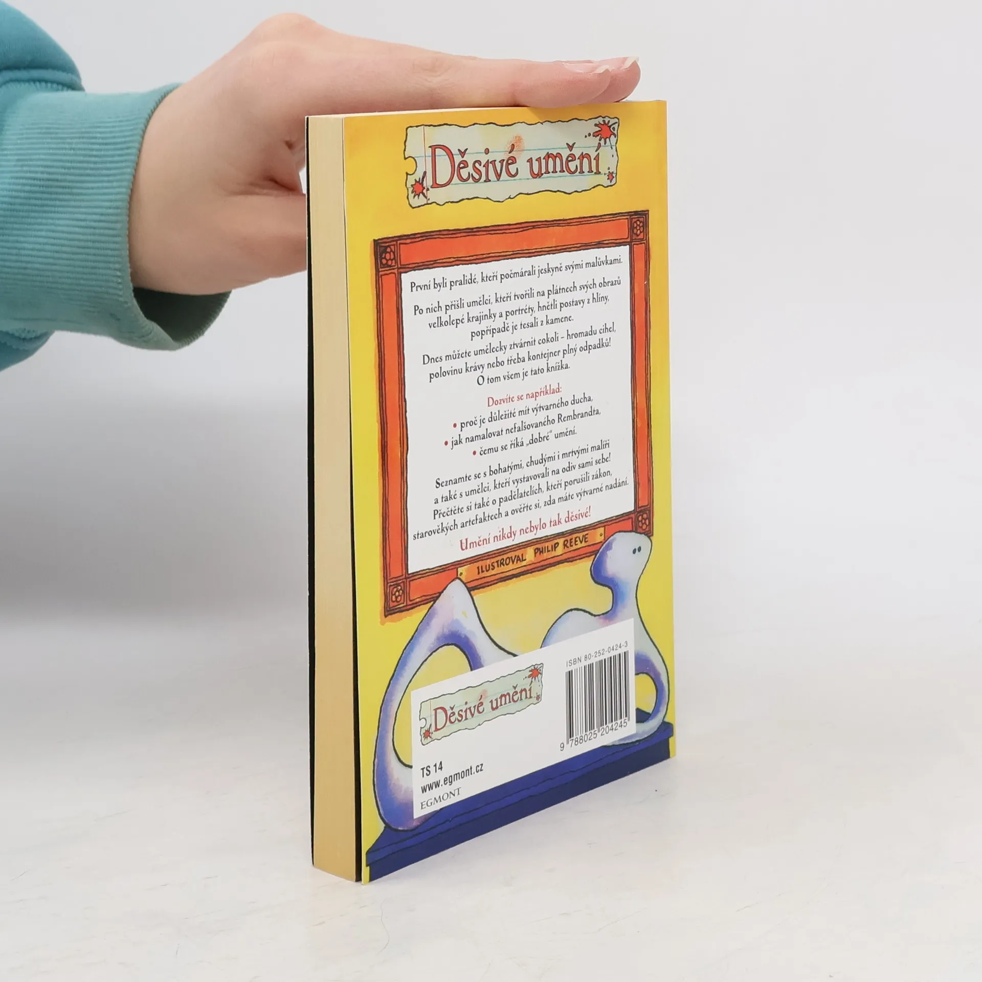 O čem se vám učitelé neodvažují říct. První byl pračlověk a jeho jeskynní malby, po něm přišli umělci, kteří malovali velkolepé krajinky a portréty, hnětli postavy z hlíny, nebo je tesali z kamene. Dnes můžete umělecky ztvárnit cokoli - hromadu cihel, polovinu krávy nebo třeba kontejner plný odpadků! Dozvíte se, proč je důležité mít výtvarného ducha, jak namalovat nefalšovaného Rembrandta a čemu se říká dobré umění. Seznamte se s bohatými, chudými i mrtvými malíři a umělci, kteří porušili zákon. Ověřte si, zda máte výtvarné nadání.