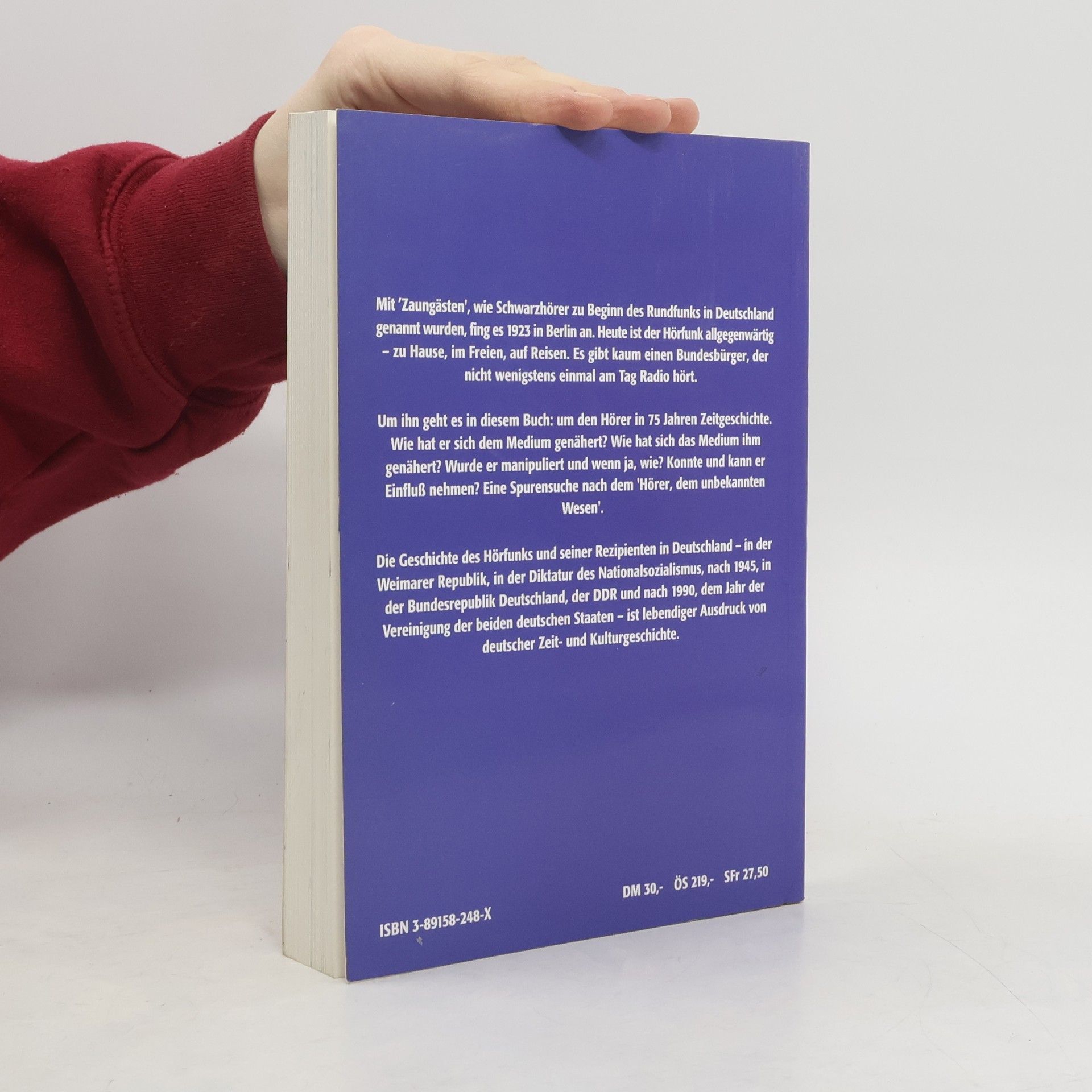 Mit „Zaungästen“, wie Schwarzhörer zu Beginn des Rundfunks in Deutschland genannt wurden, fing es 1923 in Berlin an. Heute ist der Hörfunk allgegenwärtig - zu Hause, im Freien, auf Reisen. Es gibt kaum einen Bundesbürger, der nicht wenigstens einmal am Tag Radio hört. Um ihn geht es in diesem Buch: um den Hörer in 75 Jahren Zeitgeschichte. Wie hat er sich dem Medium genähert? Wie hat sich das Medium ihm genähert? Wurde er manipuliert und wenn ja, wie? Konnte und kann er Einfluß nehmen? Eine Spurensuche nach dem „Hörer, dem unbekannten Wesen“. Die Geschichte des Hörfunks und seiner Rezipienten in Deutschland - in der Weimarer Republik, in der Diktatur des Nationalsozialismus, nach 1945, in der Bundesrepublik Deutschland, der DDR und nach 1990, dem Jahr der Vereinigung der beiden deutschen Staaten - ist lebendiger Ausdruck von deutscher Zeit- und Kulturgeschichte.