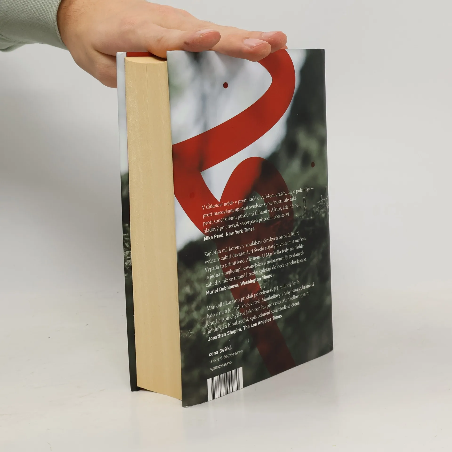 Úspěšný politický thriller Jednoho chladného lednového dne je v ospalé vesnici na severu Švédska nalezena oběť brutální vraždy. Celá víska je hrozivě klidná a opuštěná. A tiché domky vzápětí vydají své tajemství: zločin, jaký švédská historie nepamatuje. Když se o masakru dočte soudkyně Birgitta Roslinová, uvědomí si, že ji s místem pojí rodinná vazba, a rozhodne se pátrat na vlastní pěst. Jejími jedinými vodítky jsou přitom deník z 19. století a červená stuha nalezená v nedalekém lese. Birgitta postupně odkrývá mezinárodní síť korupce a s ní i příběh pomsty, který sahá víc než sto let do minulosti a propojuje Čínu a Ameriku 60. let 19. století s moderním Pekingem a Mozambikem. Vše spěje k šokujícímu rozuzlení v čínské čtvrti v Londýně. Číňan je strhující politický thriller a zároveň důmyslně propracovaná detektivka. Henning Mankell jako jeden z nejčtenějších švédských spisovatelů současnosti bývá srovnáván se svým krajanem Stiegem Larssonem.