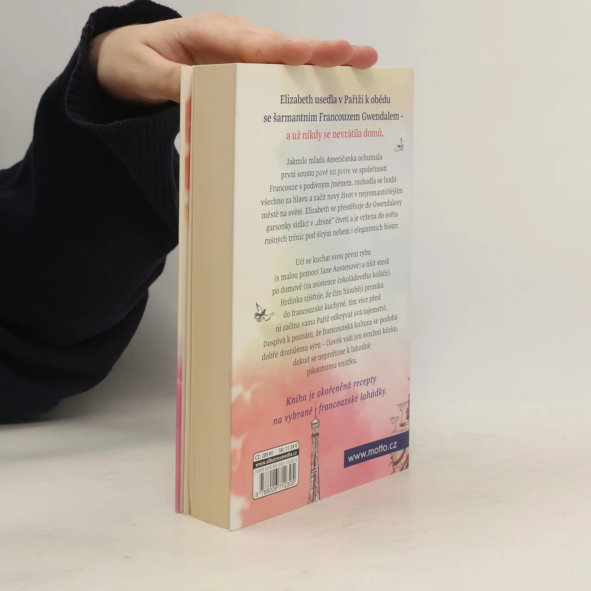 Byla to láska na první pohled? Anebo rozhodlo, jak nádherně jí zajel nůž do pavé au poire a jak se začala růžová šťáva ze steaku mísit s omáčkou z pepře a másla? Lunch in Paris je vyprávěním o tom, jak se mladá Američanka osudově zamilovala, dokázala sama pro sebe předefinovat, co je úspěch, a poznala, co to znamená, když je člověk někde doopravdy doma. Poté, co si Elizabeth sbalila věci, aby začala nový život v nejromantičtějším městě na světě, je vržena do světa rušných tržnic pod širým nebem i elegantních bister. Učí se kuchat svou první rybu (s malou pomocí Jane Austenové) a tišit stesk po domově (za asistence čokoládového koláče). Zakouká se i do místního řezníka (jenž se nebezpečně podobá Mattu Dillonovi). Hrdinka zjišťuje, že čím hlouběji proniká do francouzské kuchyně, tím více před ní začíná sama Paříž odkrývat svá tajemství. Dospívá k poznání, že francouzská kultura se podobá dobře dozrálému sýru – člověk vidí jen svrchní kůrku, dokud se neprořízne k lahodně pikantnímu vnitřku. Kniha je okořeněná recepty na vybrané lahůdky, jakými jsou letní ratatouille, tatarák z mečouna, slávky na bílém víně a fenyklu či čokoládové koláčky.