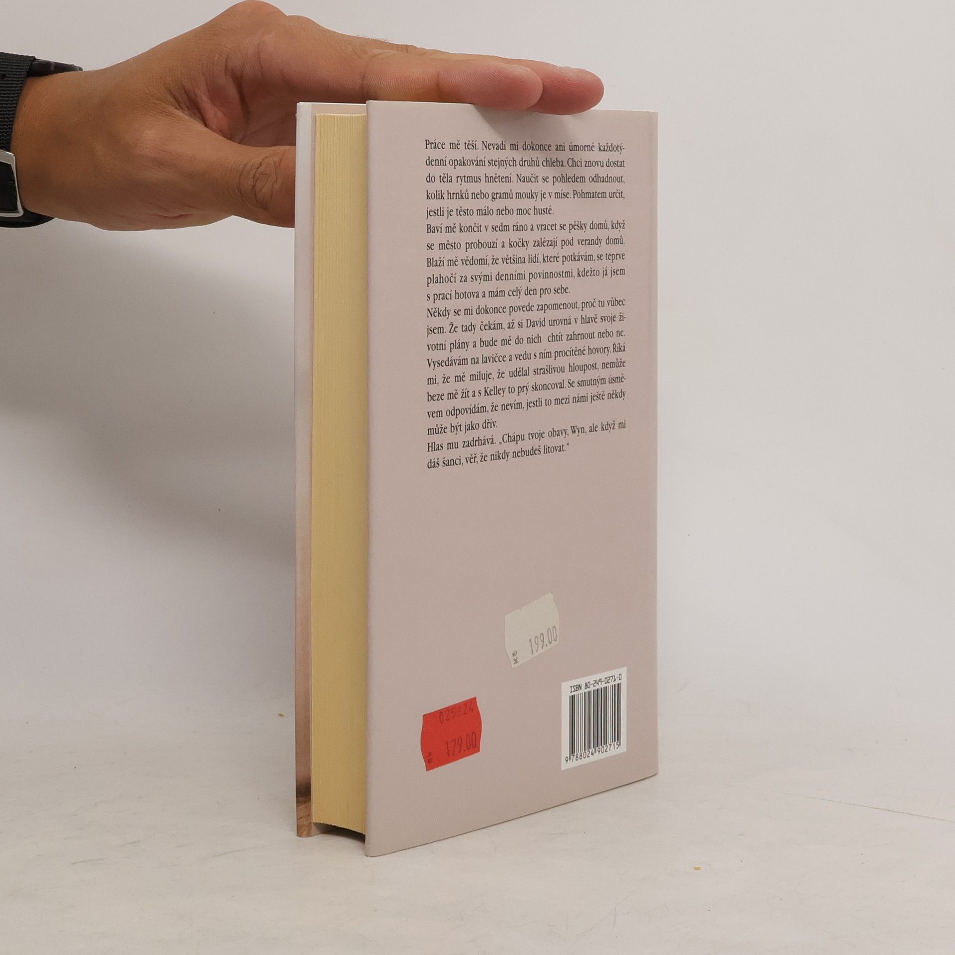 Román o mladé ženě, kterou neblahé okolnosti přimějí vzít osud do vlastních rukou a začít úplně nový život. Ústřední hrdinka, středoškolská učitelka literatury, se se svým budoucím mužem seznámí na jedné oslavě. Během krátké doby se vezmou a ona kvůli němu opustí školu, aby se zcela mohla věnovat své nové úloze: být mu dokonalou ženou a reprezentantkou ve společnosti. Po sedmi letech pro ni celkem spokojeného života jí náhle manžel oznámí, že ho vše svazuje a že by nějaký čas neměli žít spolu. Žena jede pro radu ke své přítelkyni a u ní objeví příjemnou pekárnu, jejíž majitelka jí nabídne zaměstnání. Pečení chleba a pečiva je totiž její velikou zálibou od doby, kdy pobývala v Paříži. Když dostane tuto nabídku, uvědomí si, že by tak mohla najít nový smysl života i sebe samu a to jí pomůže k rozhodnutí, aby problém svého manželství konečně nějak vyřešila a začala znovu žít naplno a jinak.