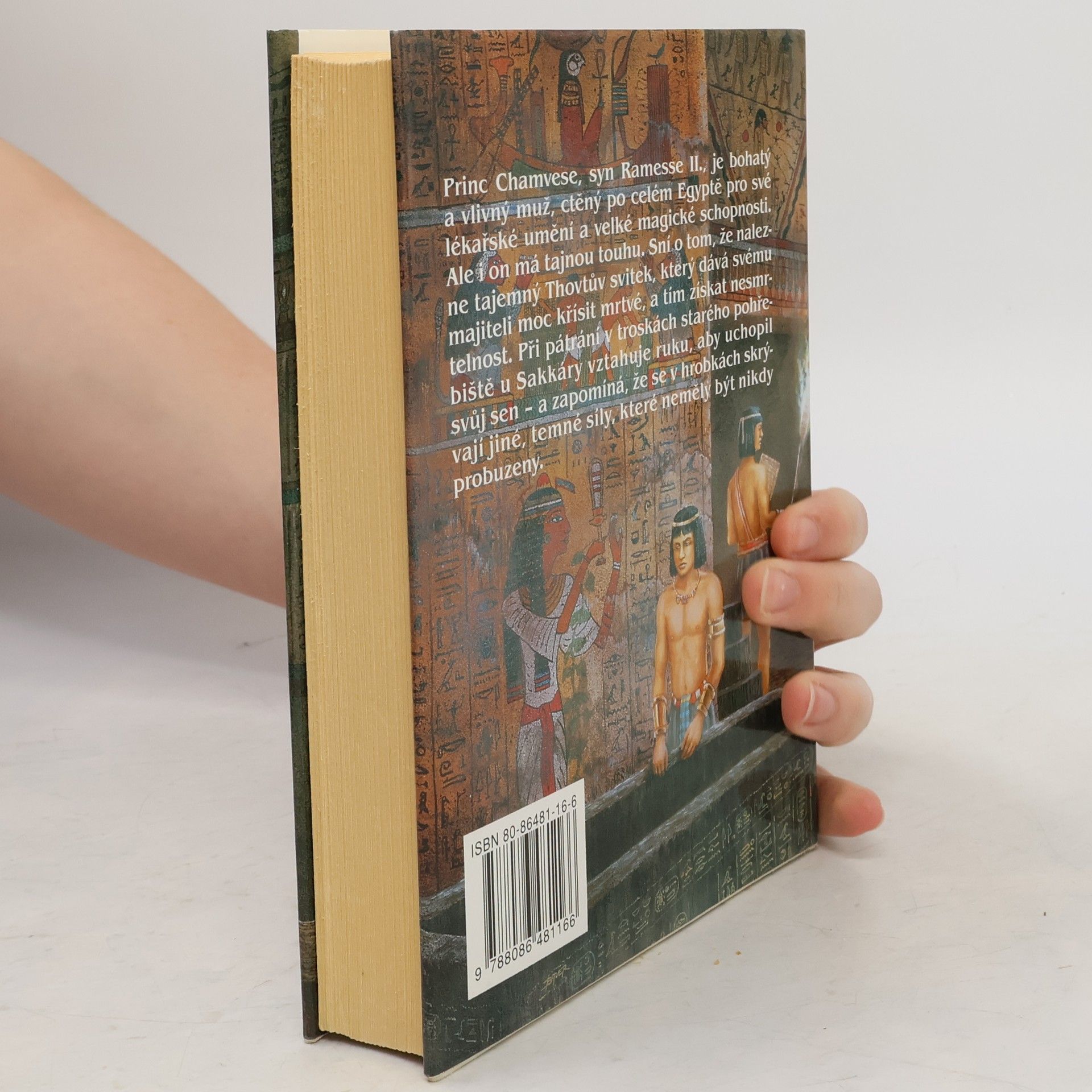 Román ze starověkého Egypta s hororovými prvky od známé kanadské autorky. Autorka použila starou egypskou legendu a na jejím základě napsala napínavý román. Hlavním hrdinou je princ Chamvese, syn Ramesse II.,kterému se podaří nalézt tajemný Thovtův svitek, který dává svému majiteli moc křísit mrtvé. Chamvese má možnost svitek zničit a žít dál klidný život v přepychu, ale nedokáže to a tím dá průchod působení nadpřirozených sil, se kterými není radno si zahrávat.