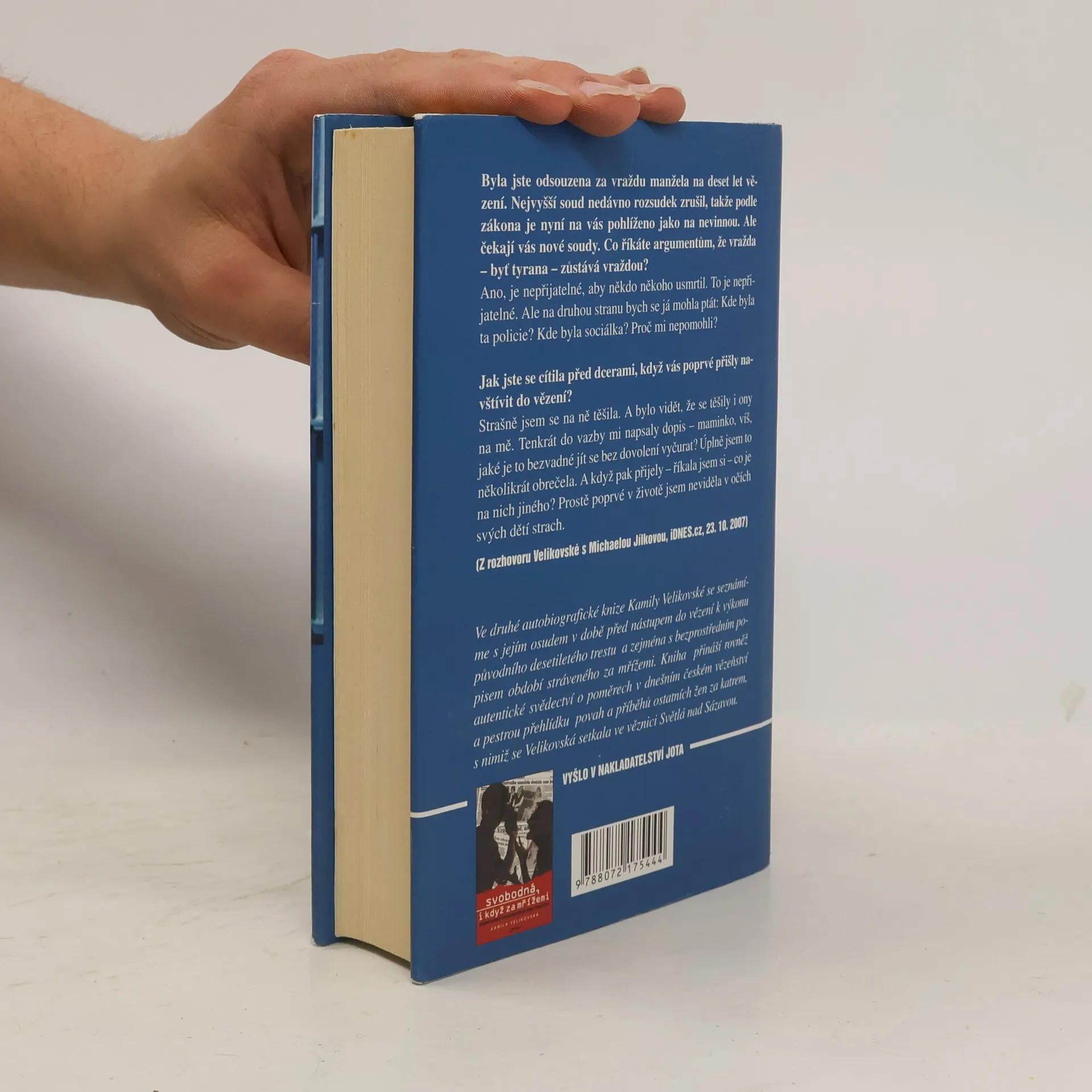 Ve druhé autobiografické knize Kamily Velikovské se seznámíme s jejím osudem v době před nástupem do vězení k výkonu původního desetiletého trestu a zejména s bezprostředním popisem období stráveného za mřížemi. Kniha přináší rovněž autentické svědectví o poměrech v dnešním českém vězeňství a pestrou přehlídku povah a příběhů ostatních žen za katrem, s nimiž se Velikovská setkala ve věznici Světlá nad Sázavou...