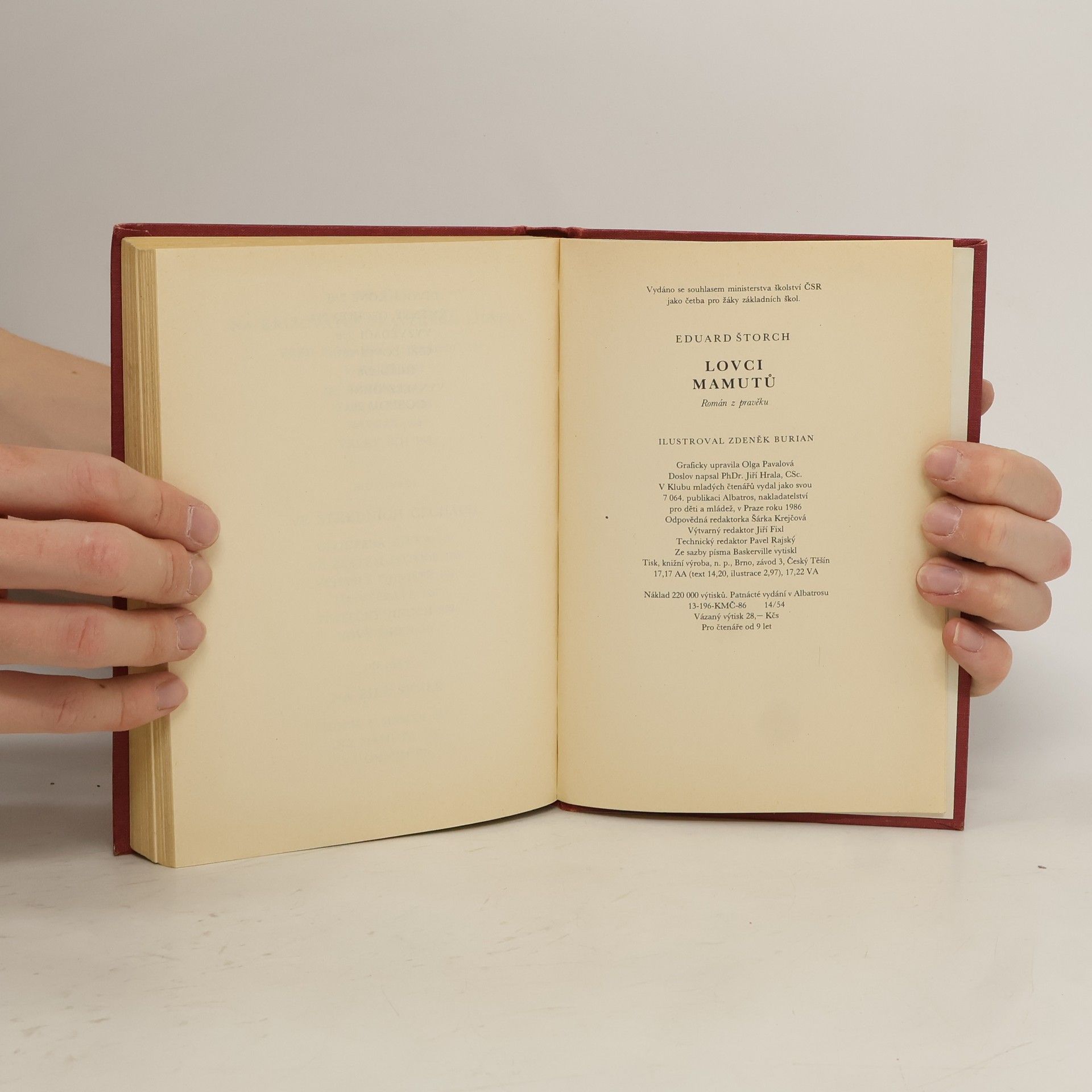 Na podkladě světově významných archeologických nálezů v českých zemích, zejména na Moravě, vyvolává autor formou románu pro mládež obraz naší přírody a života prvotně pospolné společnosti v době kamenné před dvaceti až třiceti tisíci lety. Tenkrát byla vypuzena z věstonického sídliště tlupa diluviálních lovců, která za neustálých bojů s hladem, přírodou a nepřáteli dospěje do konečného sídla na místech dnešní Libně. 19. vydání, v Albatrosu 11.