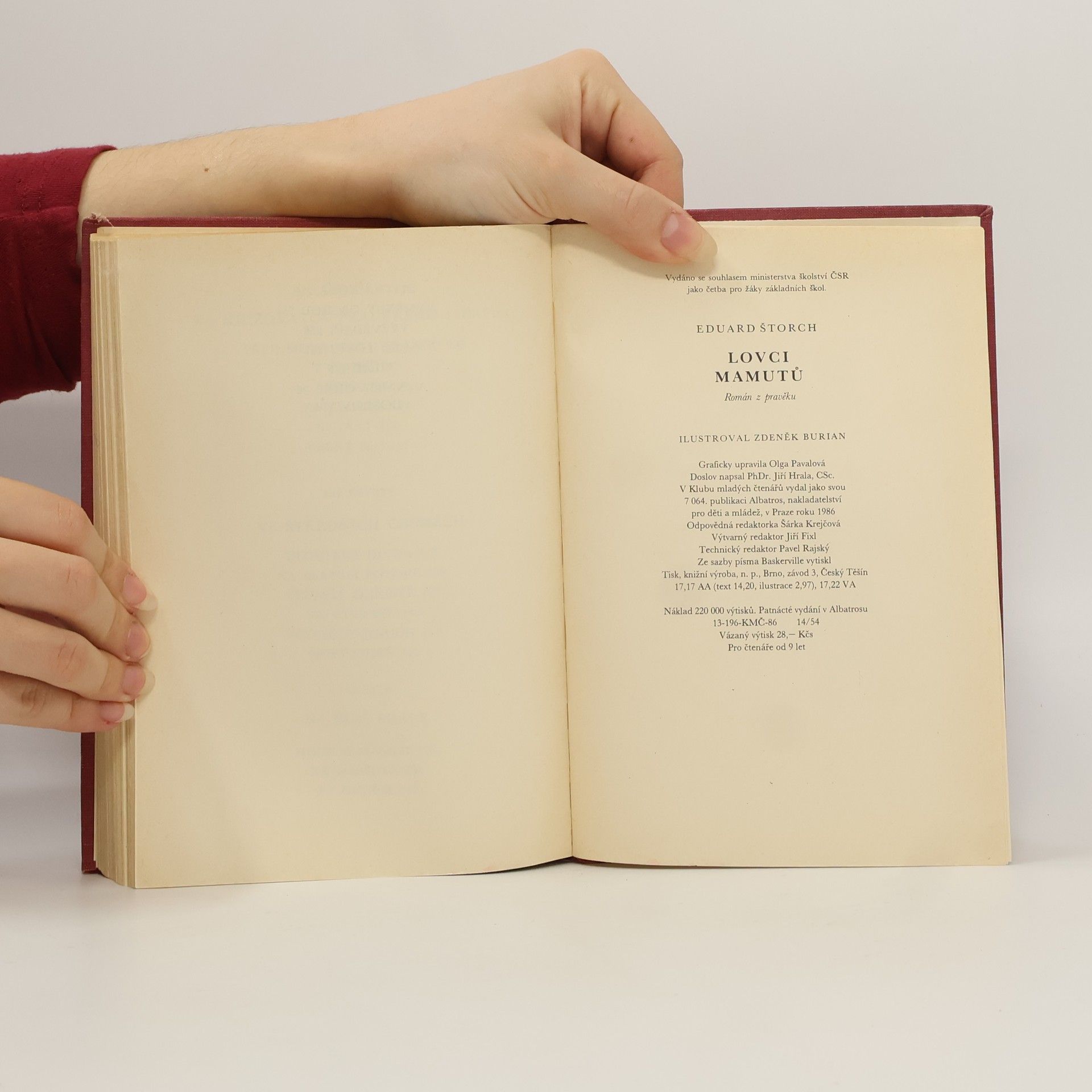 Na podkladě světově významných archeologických nálezů v českých zemích, zejména na Moravě, vyvolává autor formou románu pro mládež obraz naší přírody a života prvotně pospolné společnosti v době kamenné před dvaceti až třiceti tisíci lety. Tenkrát byla vypuzena z věstonického sídliště tlupa diluviálních lovců, která za neustálých bojů s hladem, přírodou a nepřáteli dospěje do konečného sídla na místech dnešní Libně. 19. vydání, v Albatrosu 11.