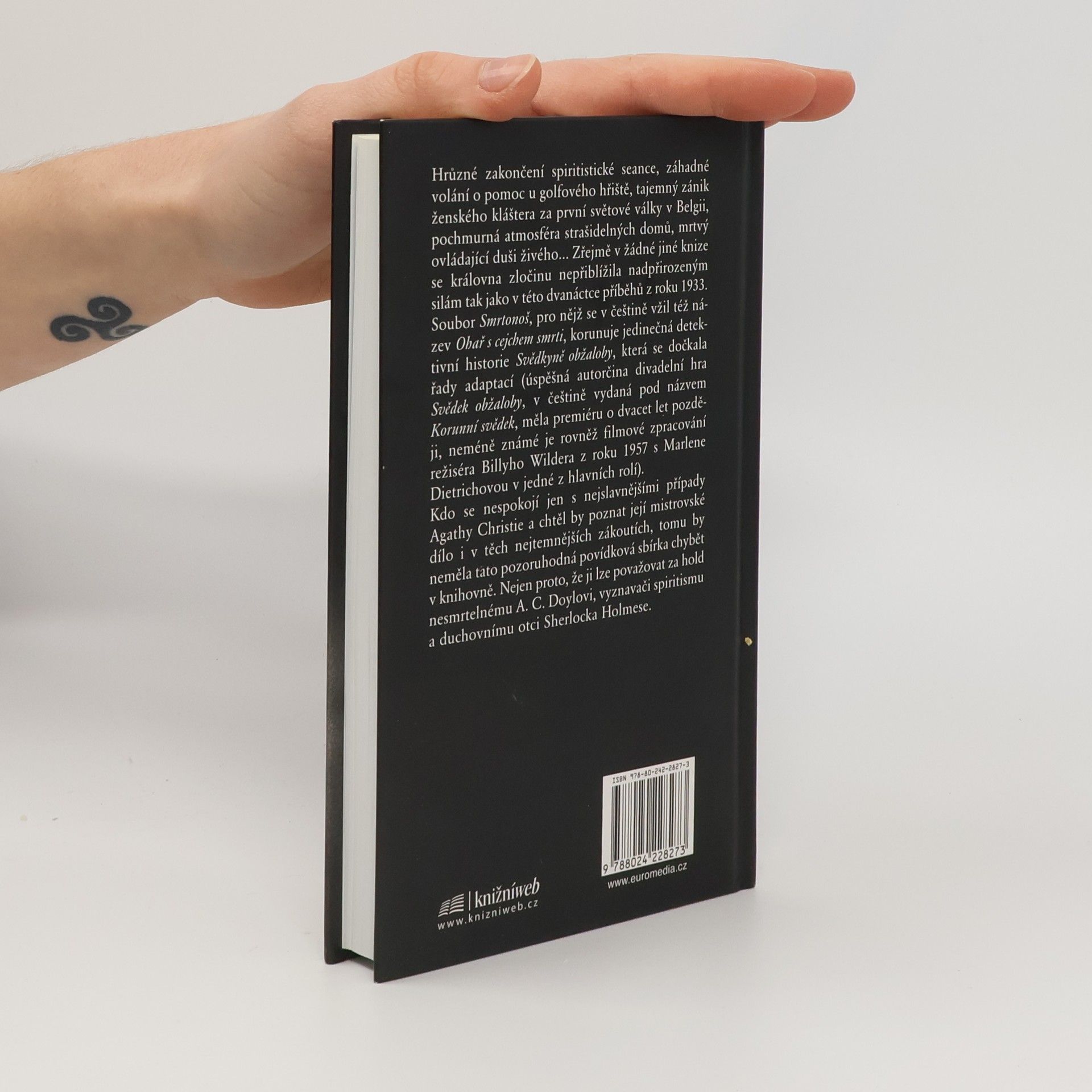 Hrůzné zakončení spiritistické seance, záhadné volání o pomoc u golfového hřiště, tajemný zánik ženského kláštera za první světové války v Belgii, pochmurná atmosféra strašidelných domů, mrtvý ovládající duši živého… Zřejmě v žádné jiné knize se královna zločinu nepřiblížila nadpřirozeným silám tak jako v této dvanáctce příběhů z roku 1933. Soubor Smrtonoš, pro nějž se v češtině vžil též název Ohař s cejchem smrti, korunuje jedinečná detektivní historie Svědkyně obžaloby, která se dočkala řady adaptací (úspěšná autorčina divadelní hra Svědek obžaloby, v češtině vydaná pod názvem Korunní svědek, měla premiéru o dvacet let později, neméně známé je rovněž filmové zpracování režiséra Billyho Wildera z roku 1957 s Marlene Dietrichovou v jedné z hlavních rolí). Kdo se nespokojí jen s nejslavnějšími případy Agathy Christie a chtěl by poznat její mistrovské dílo i v těch nejtemnějších zákoutích, tomu by neměla tato pozoruhodná povídková sbírka chybět v knihovně. Nejen proto, že ji lze považovat za hold nesmrtelnému A. C. Doylovi, vyznavači spiritismu a duchovnímu otci Sherlocka Holmese.