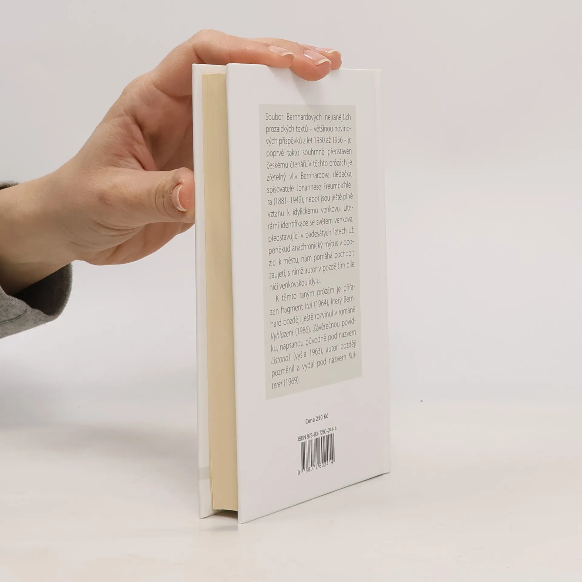 Soubor Bernhardových nejranějších prozaických textů – většinou novinových příspěvků z let 1950 až 1956 – je poprvé takto souhrnně představen českému čtenáři. V těchto prózách je zřetelný vliv Bernhardova dědečka, spisovatele Johannese Freumbichlera (1881–1949), neboť jsou ještě plné vztahu k idylickému venkovu. Literární identifikace se světem venkova, představující v padesátých letech už poněkud anachronický mýtus v opozici k městu, nám pomáhá pochopit zaujetí, s nímž autor v pozdějším díle ničí venkovskou idylu. K těmto raným prózám je přiřazen fragment Ital (1964), který Bernhard později ještě rozvinul v románě Vyhlazení (1986). Závěrečnou povídku, napsanou původně pod názvem Listonoš (vyšla 1963), autor později pozměnil a vydal pod názvem Kulterer (1969).
