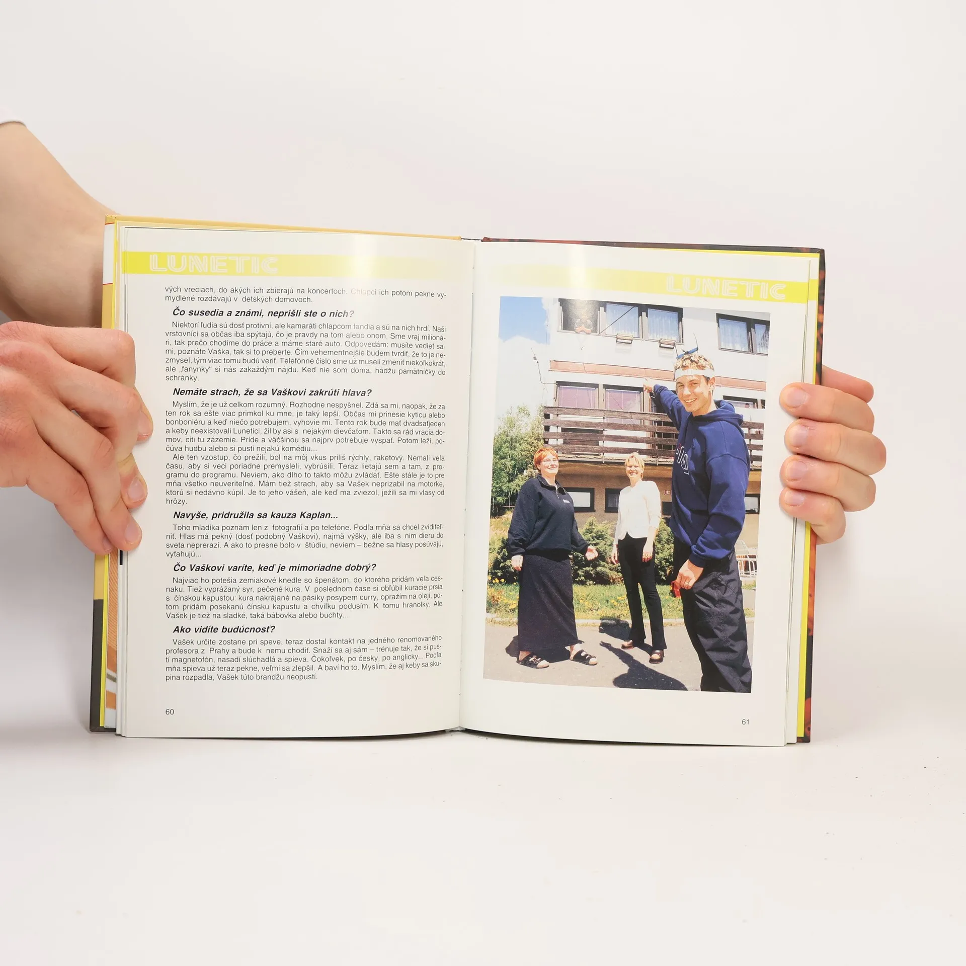 Publikace představuje českou hudební skupinu Lunetic. Z této knížky, v níž převládají fotografie, se lze dozvědět o protagonistech Luneticu opravdu všechno, včetně horoskopů a původní barvy vlasů. Existence skupiny Lunetic je formulována velmi jednoduše: "Jsme tu jen na jedno kafe, proto bychom měli svůj čas využít co nejlíp" a "Není to umění, velká kultura, ale zábavná show pro děti. Tak trochu kýč, který se má líbit". Za těchto okolností se vznik této knihy jeví jako zákonitost a fanynky skupiny ve věku od osmi do patnácti let si opravdu přijdou na své. Zůstavá ovšem otázka, kdy jim šikovní manažeři naservírují další klučičí kapelu, ušitou na míru. Součástí knihy byly i plakátky!