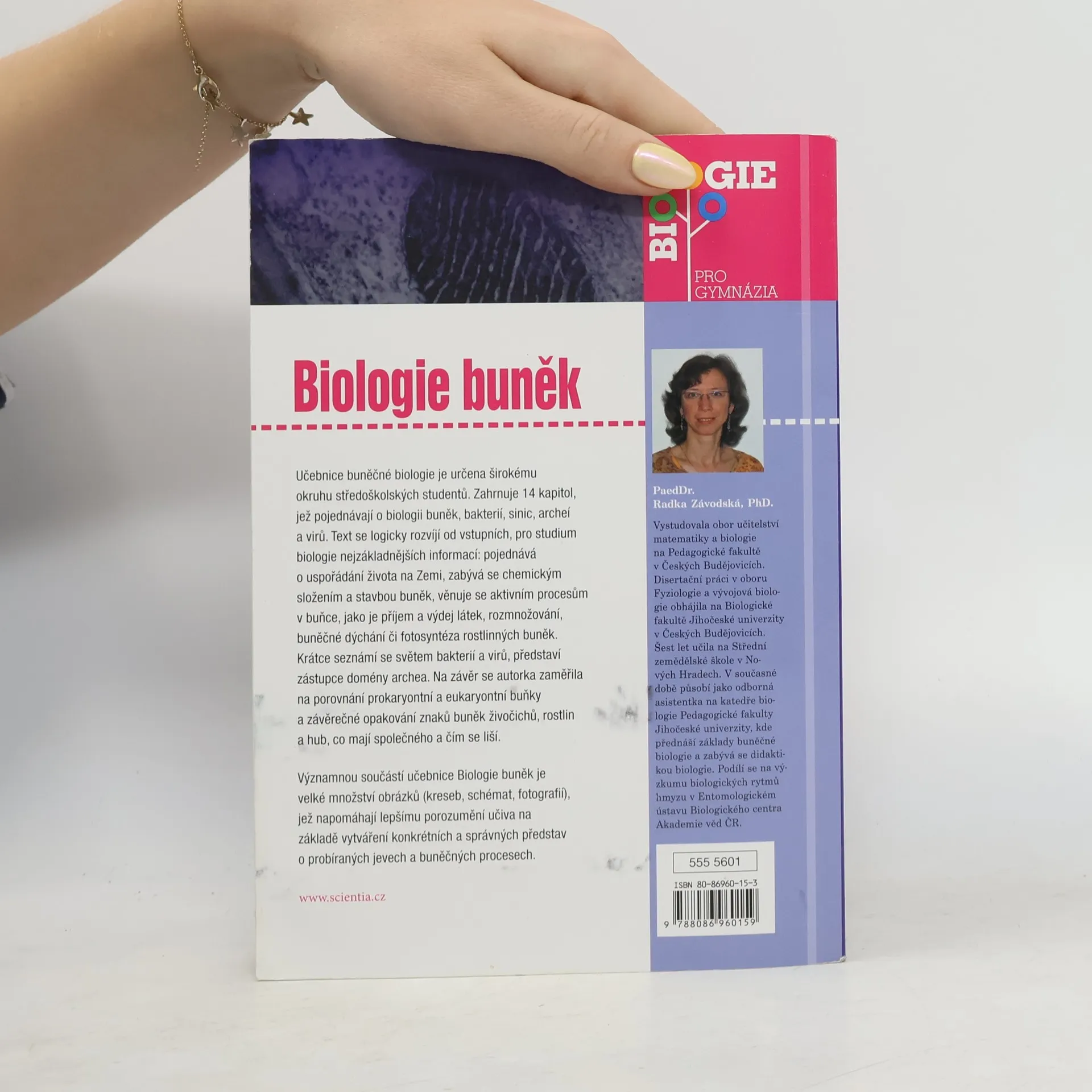 Učebnice buněčné biologie je určena širokému okruhu středoškolských studentů. Zahrnuje 14 kapitol s problematikou biologie buněk, bakterií, sinic, archeí a virů. Titul je doporučeným studijním podkladem pro přípravu ke SCIO testům! První kapitola pojednává o uspořádání života na Zemi, kapitoly 2–5 se zabývají chemickým složením a stavbou buněk. Následující kapitoly jsou věnovány procesům, jako je příjem a výdej látek buňkou (kapitola 6), rozmnožování buněk (kapitola 7), buněčné dýchání (kapitola 8) a fotosyntéza rostlinných buněk (kapitola 9). V 10. a 11. kapitole se seznámíte se světem bakterií a sinic, kapitola 12 krátce pojednává o zástupcích domény archea, kapitola 13 je věnována virům a virovým infekcím. Poslední kapitola je zaměřena na porovnání prokaryontní a eukaryontní buňky a závěrečné zopakování znaků buněk živočichů, rostlin a hub, co mají společného a čím se liší. Struktura textu je obdobná jako v Genetice. Významnou součástí učebnice Biologie buněk je velké množství obrázků (kreseb, schémat, fotografií), jež napomáhají k lepšímu porozumění učiva na základě vytváření konkrétních a správných představ o probíraných jevech a buněčných procesech.