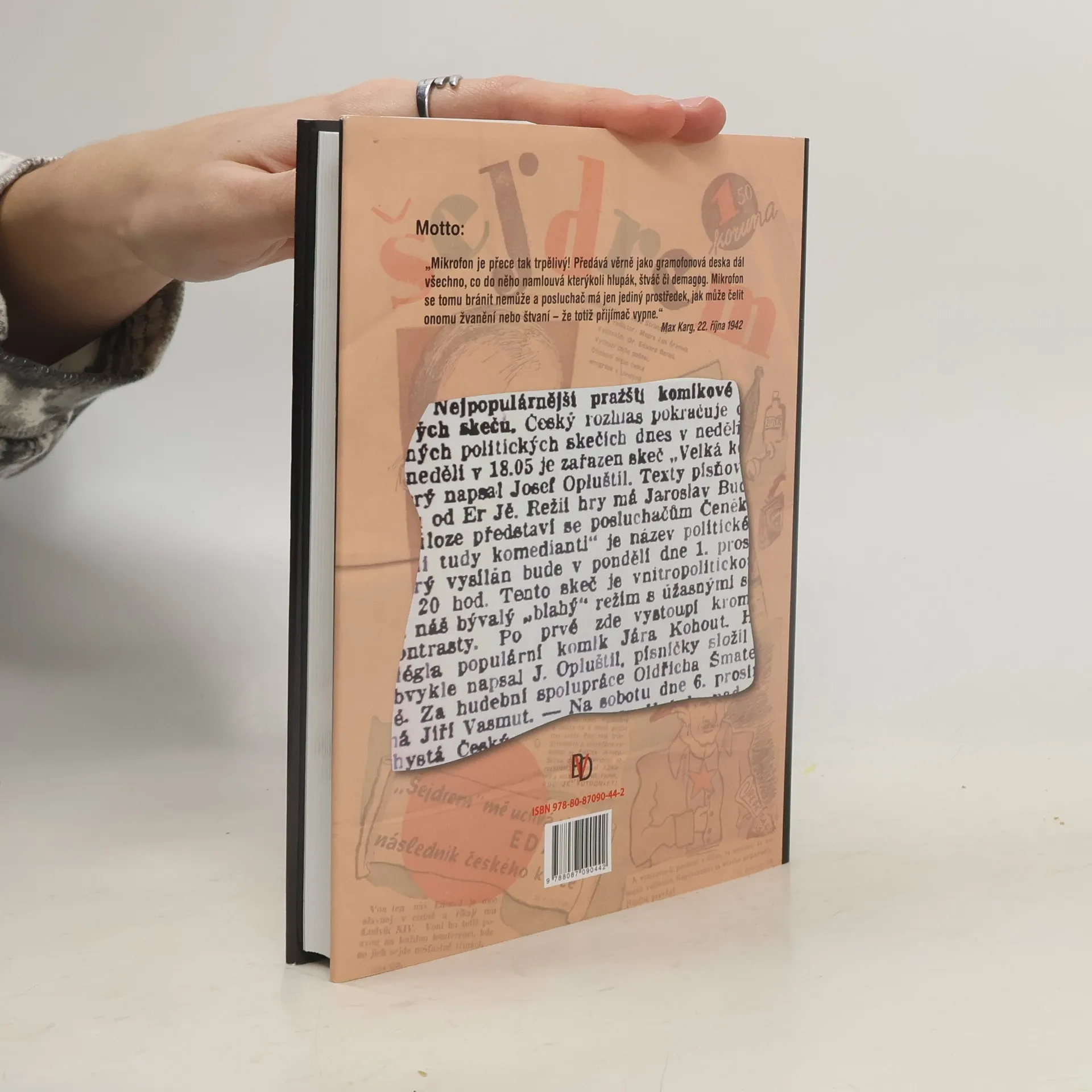 Autor úspěšné knihy o herci Čeňku Šléglovi se i ve své další knize zabývá fenoménem údajné i skutečné kolaborace v období Protektorátu. Už název titulu napovídá, že jde o kolaboraci na rozhlasový způsob. Právě v rozhlase té doby se zrodil rádoby satirický útvar zvaný skeč, který svou proněmeckou orientací způsobil mnoho škod a zasel i podhoubí mnoha životním tragédiím. Svůj stín vrhl i na Vlastu Buriana, který po válce musel čelit ne zcela opodstatněným důsledkům jediného vystoupení, a to z donucení. Paradoxně to jeho osud ovlivnilo mnohem zásadněji, než osud těch, kteří byli skutečnými duchovními otci kolaborantských "taškařic", nicméně v roce 1945 stačili včas převléct kabáty a stali se úctyhodnými občany… Kniha je doplněna předmluvou PhDr. Vladimíra Justa.